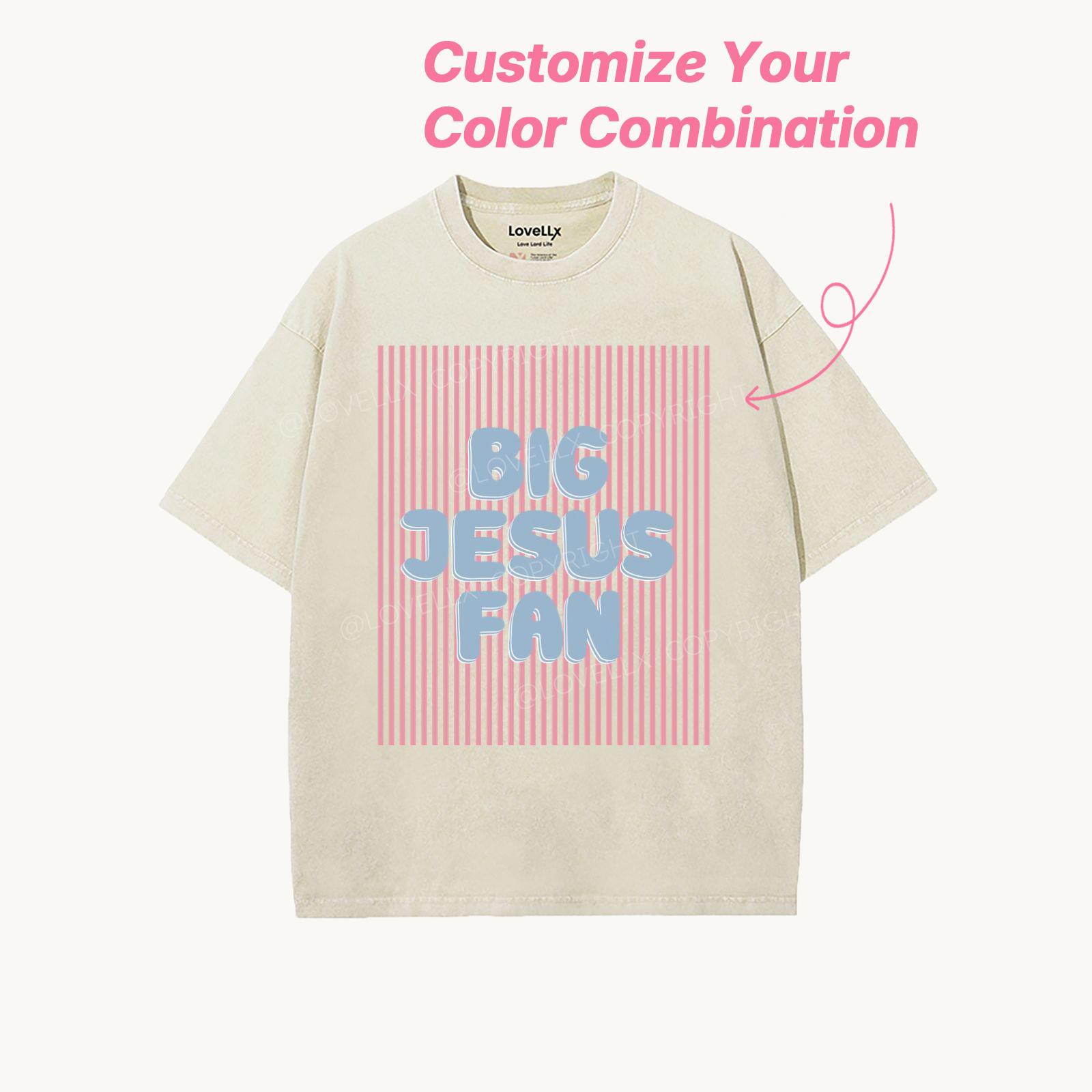 Custom Big Jesus Fan Washed T-Shirt$32.99 USD