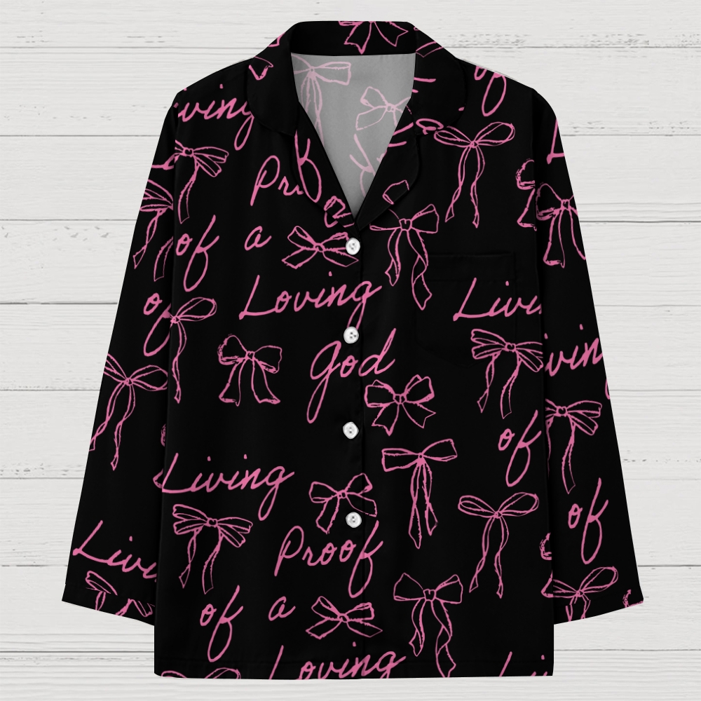 Living Proof Of A Loving God Long Sleeved Ice Silk Pajama Set$49.99 USD$69.99 USD