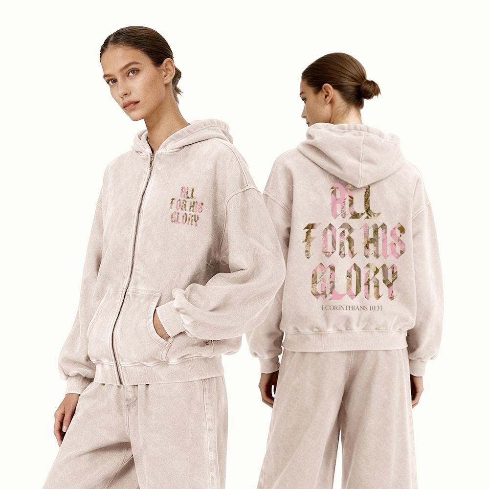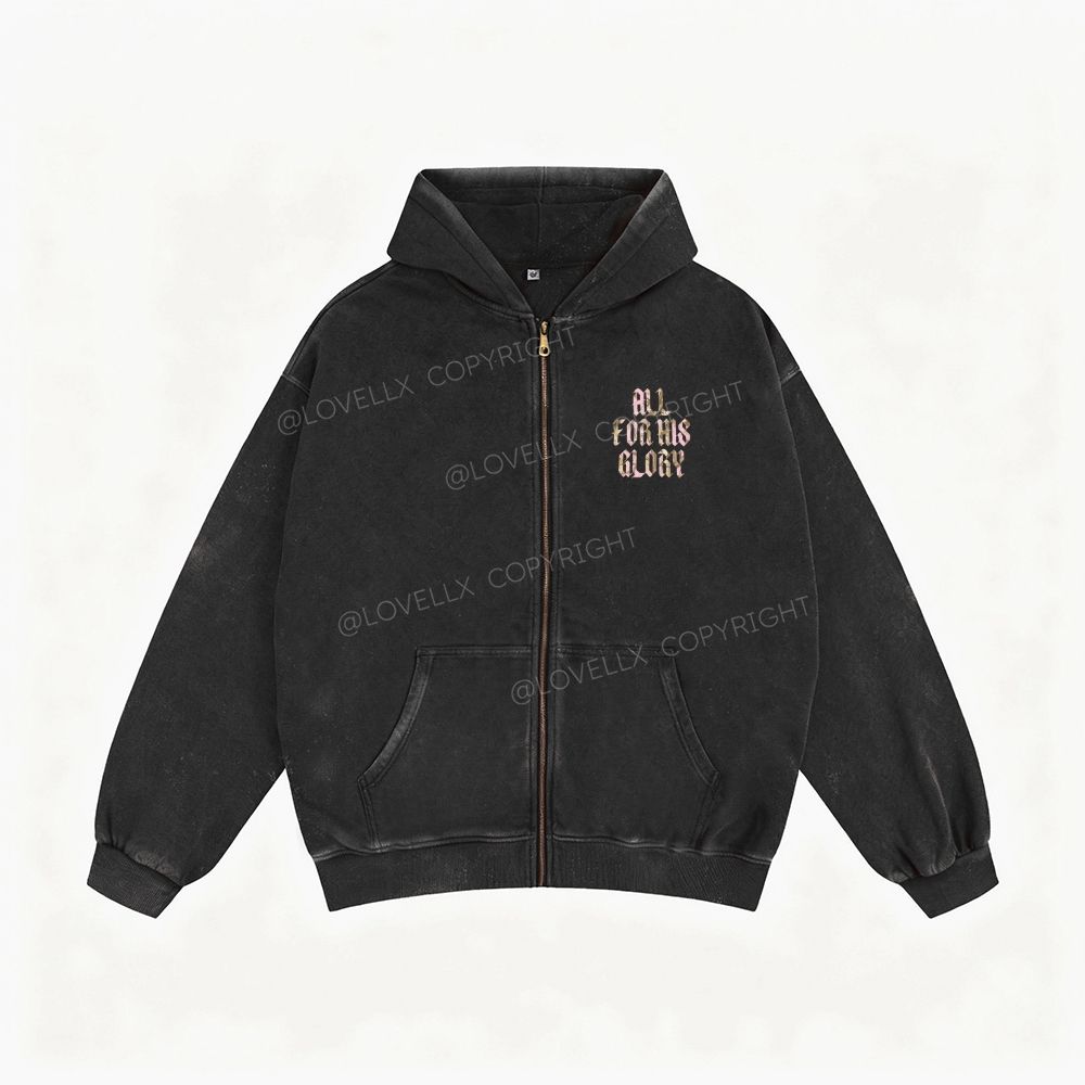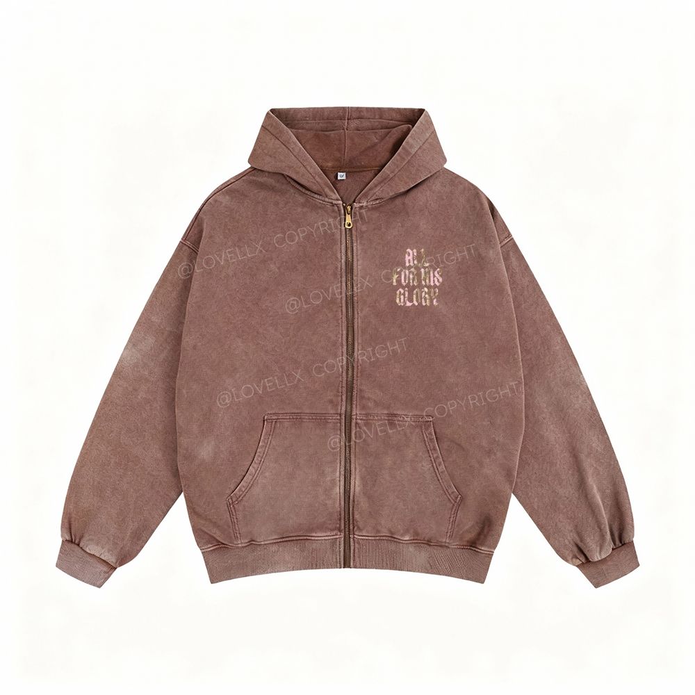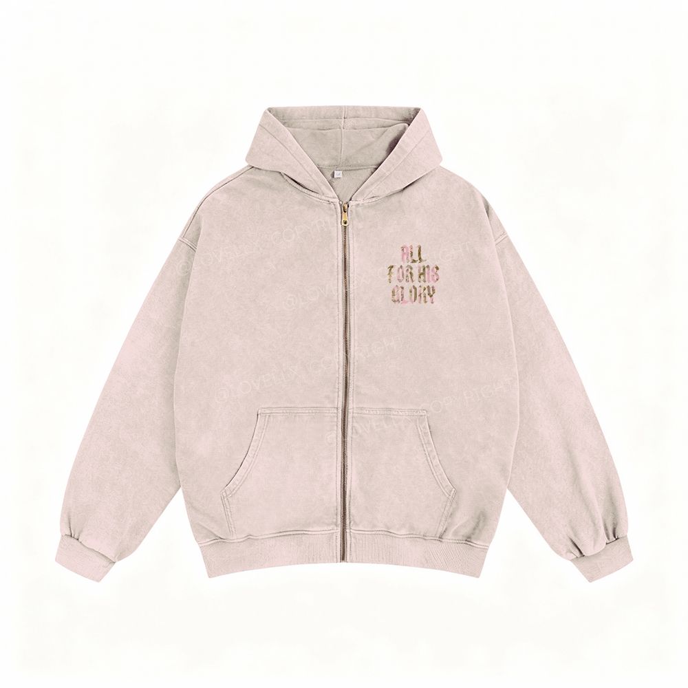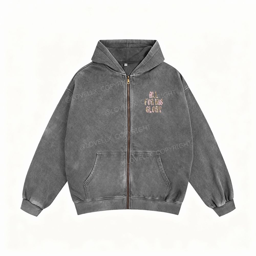 All For His Glory Unisex Washed Zip-Up Hoodie