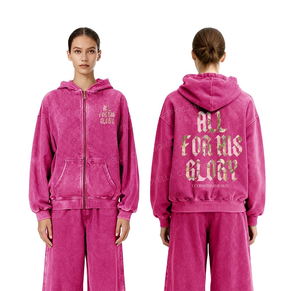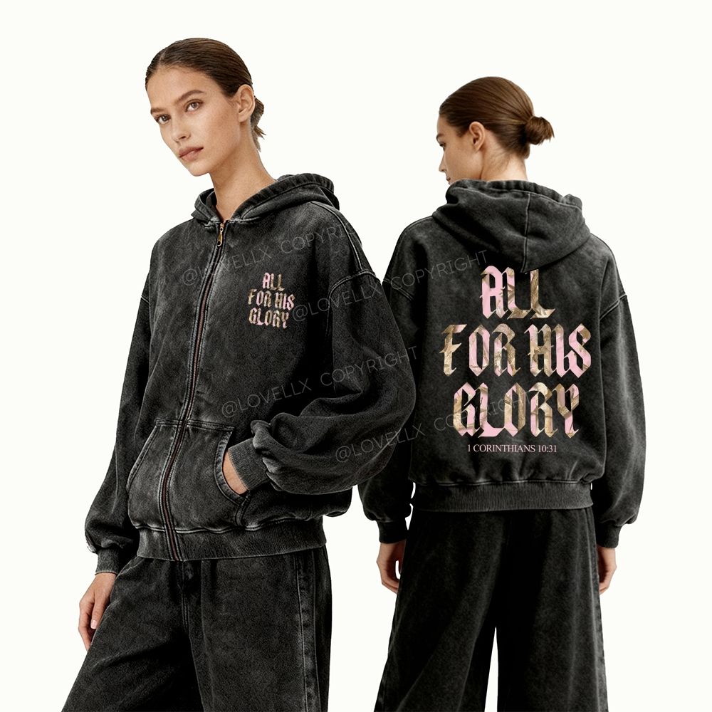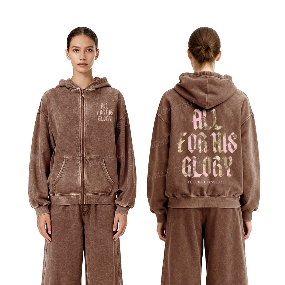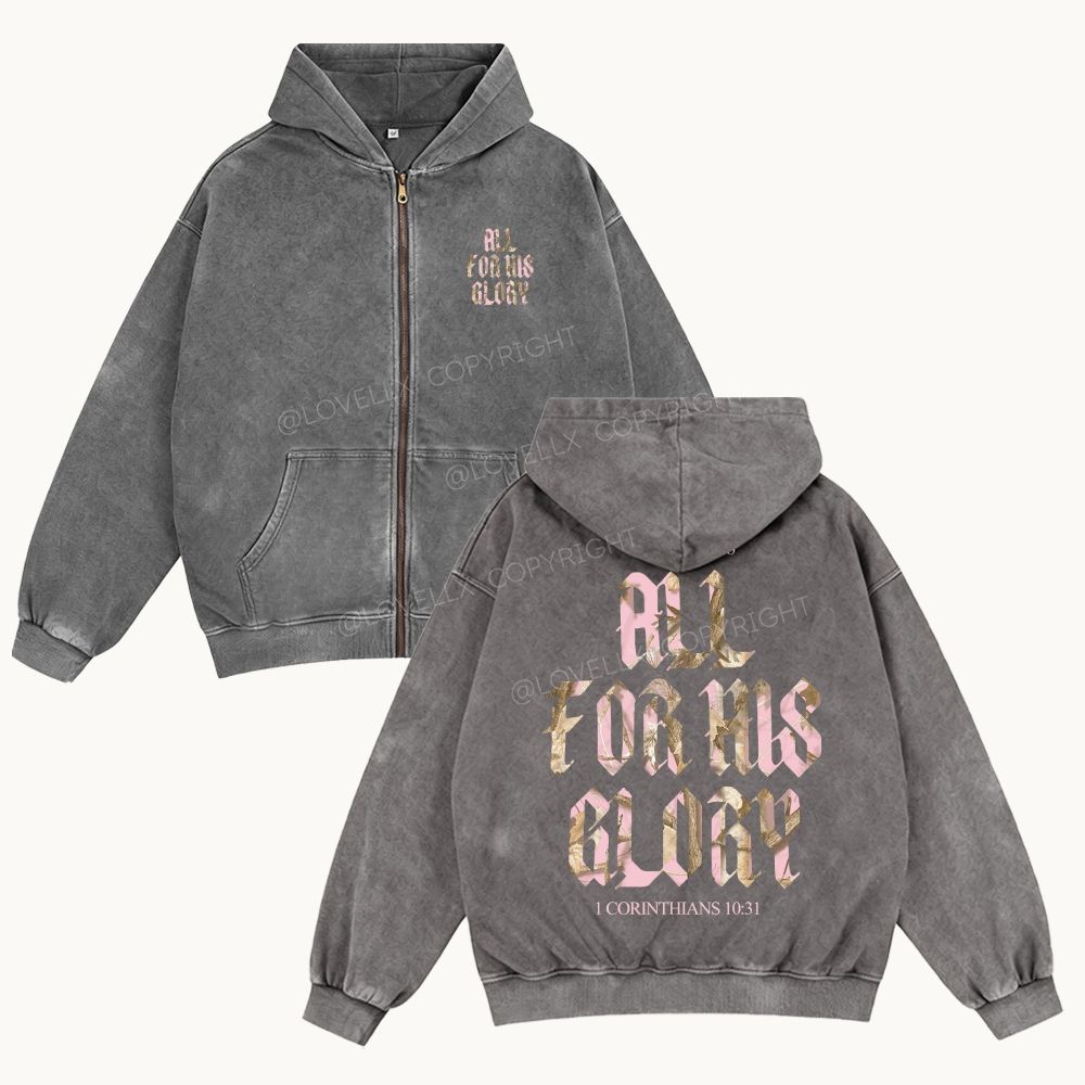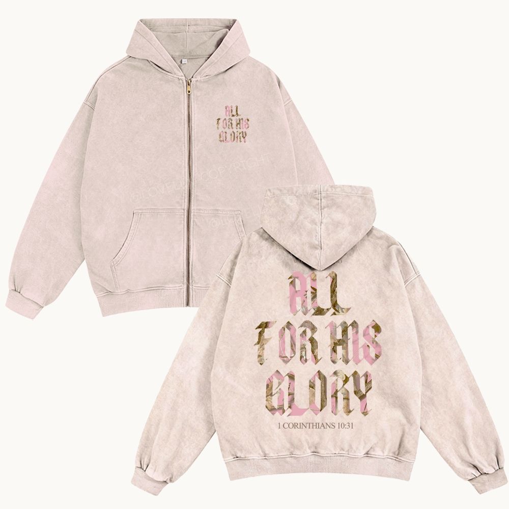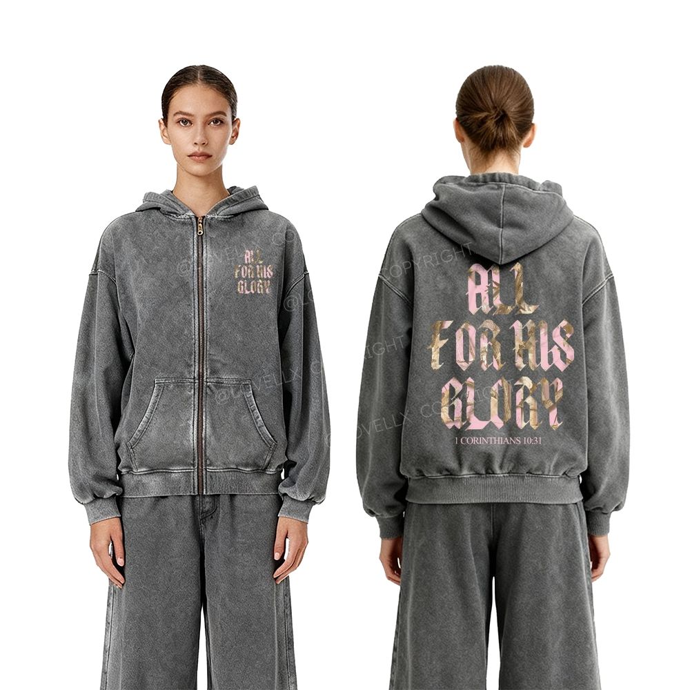All For His Glory Unisex Washed Zip-Up Hoodie