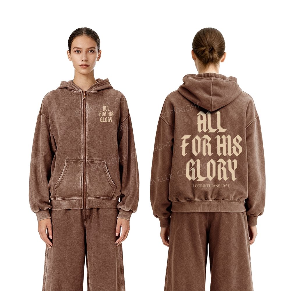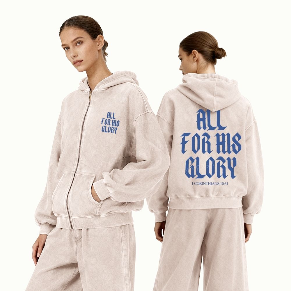 All For His Glory Unisex Washed Zip-Up Hoodie