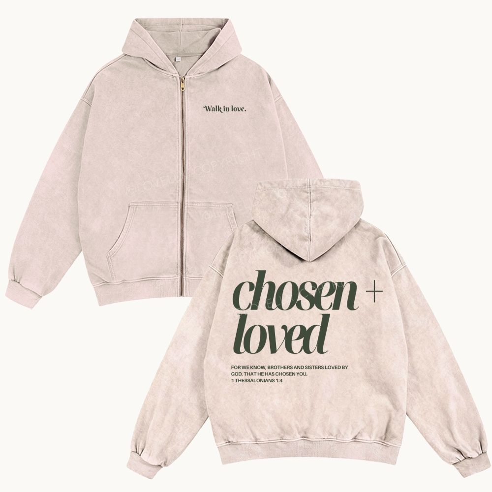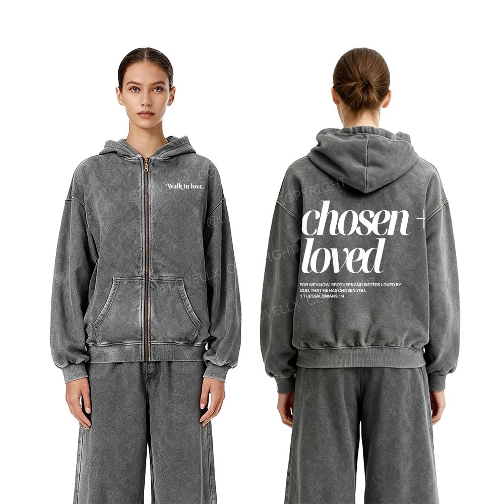 Chosen By God Unisex Washed Zip-Up Hoodie
