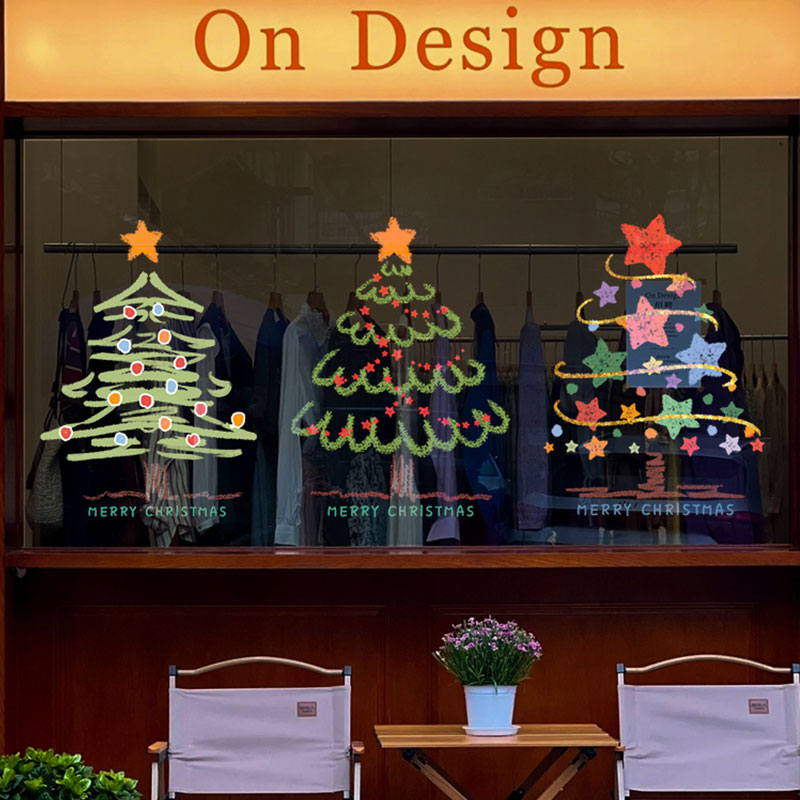 The front and back sides of the sticker are the same color, there is no glue, and they are adsorbed on the glass using static electricity.