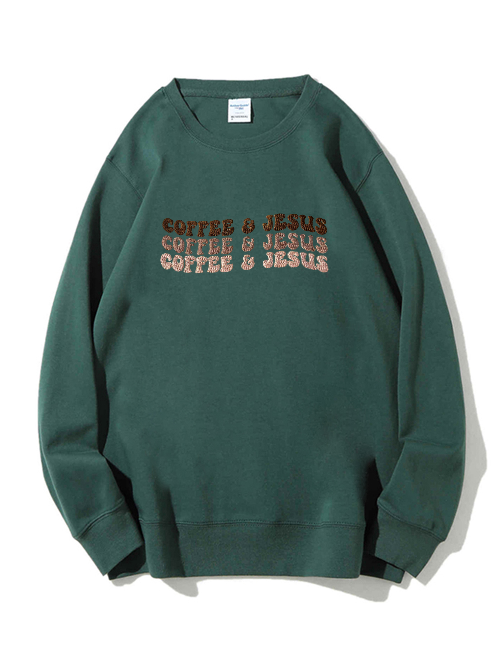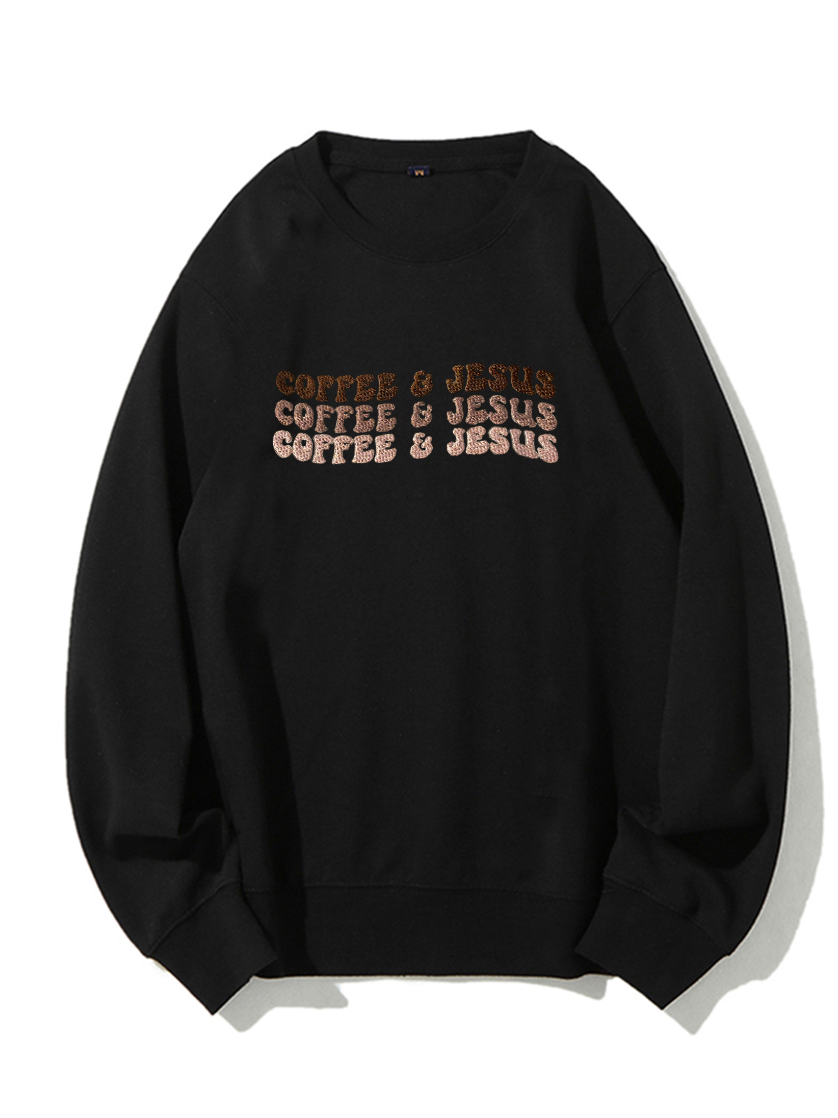 Coffee & Jesus Embroidery Unisex Crewneck Sweatshirt