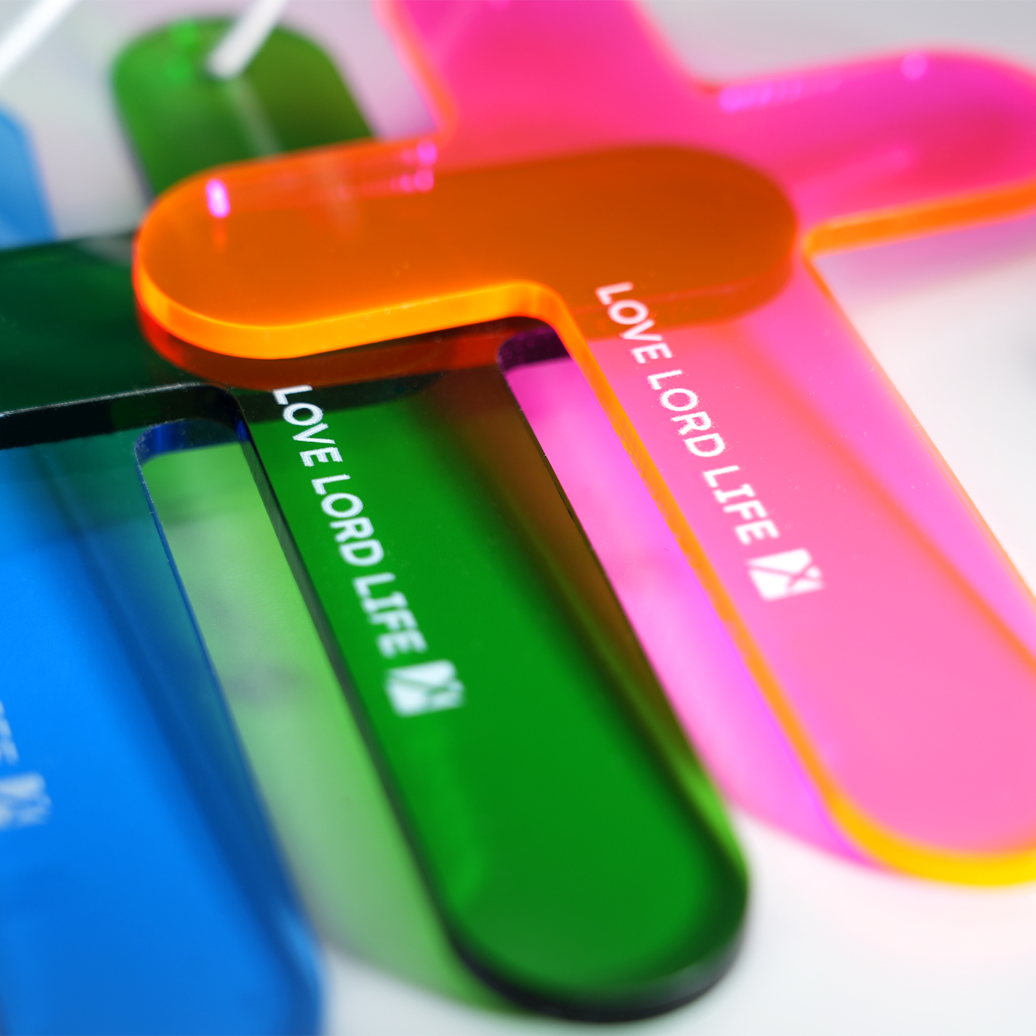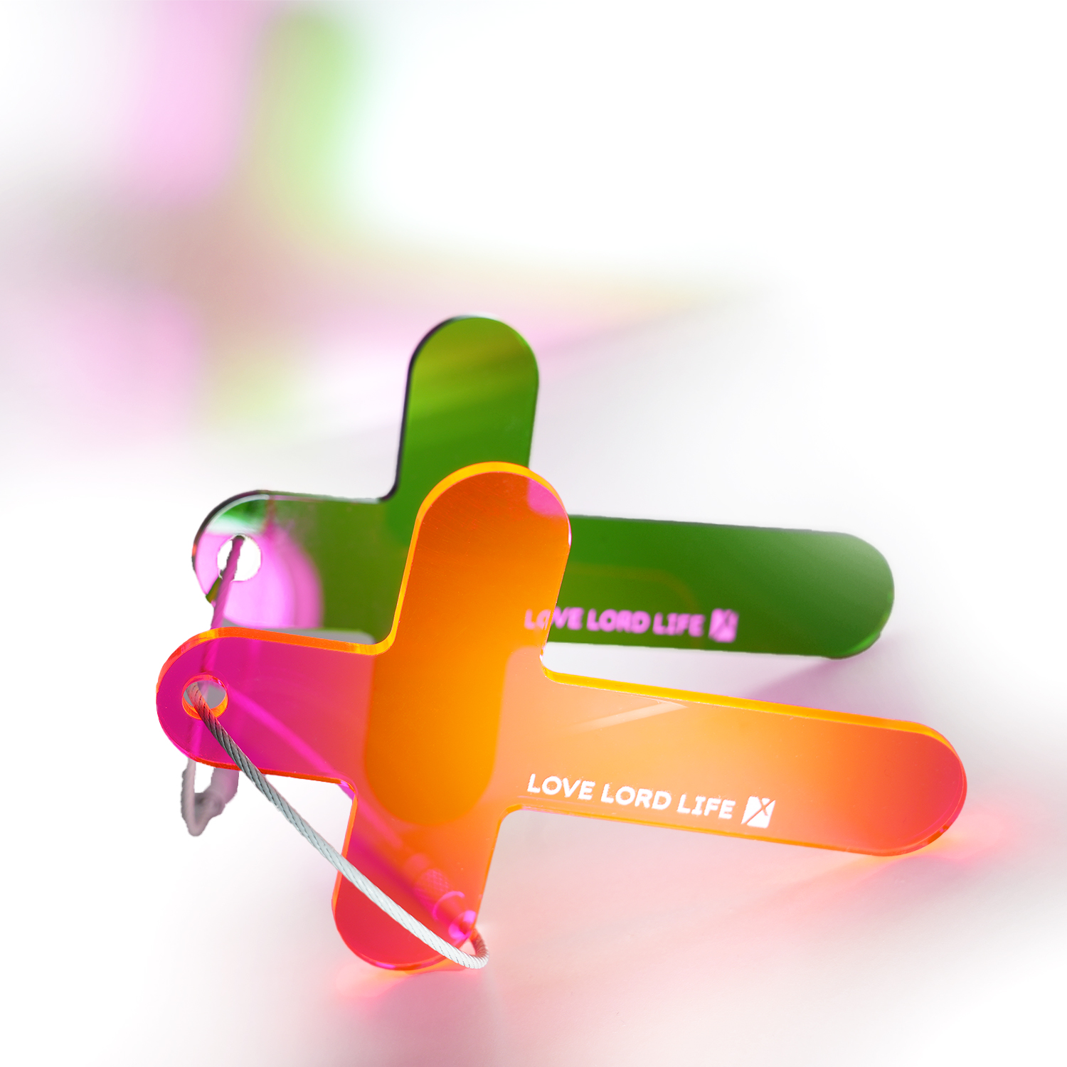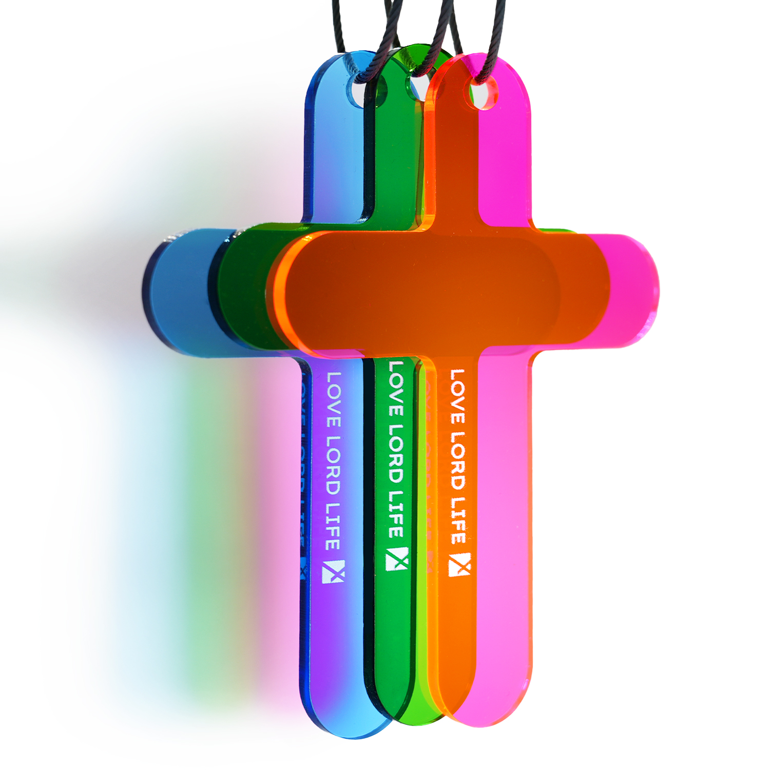 This elegant keychain features a classic cross shape, crafted from durable acrylic for a lightweight yet sturdy design. Available in a variety of vibrant colors, it showcases the uplifting words "LOVE LORD LIFE", reflecting the core values of faith, devotion, and divine purpose. Perfect as a daily reminder of God's grace or as a meaningful gift for loved ones. Its compact size makes it ideal for keys, bags, or backpacks, keeping spiritual inspiration close at hand wherever you go.