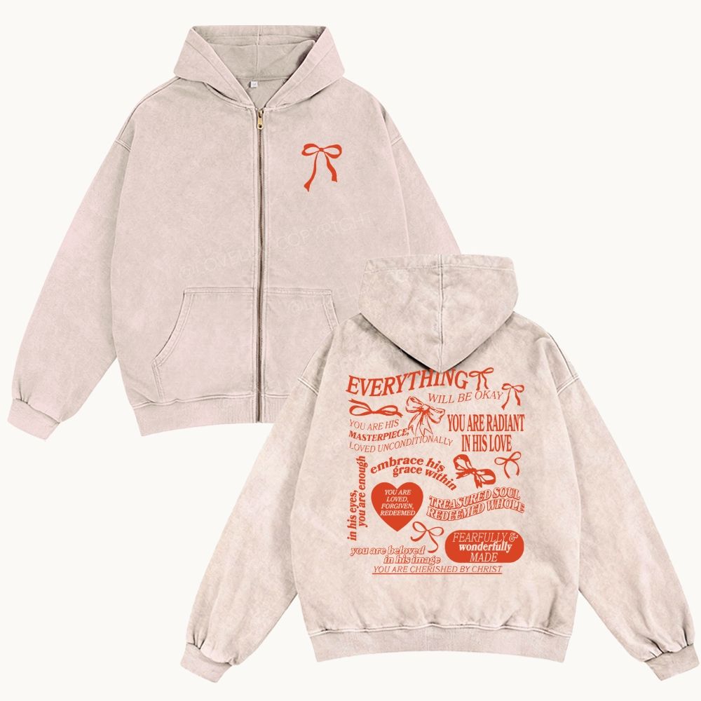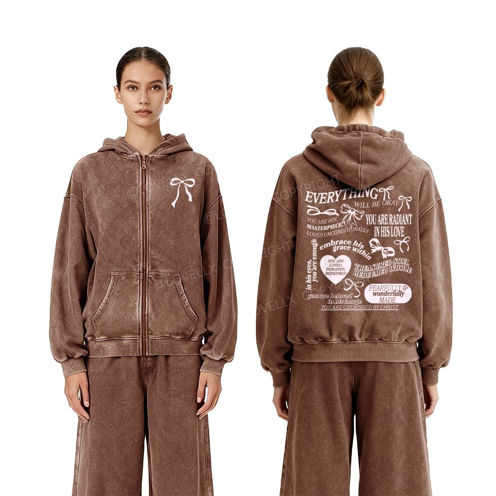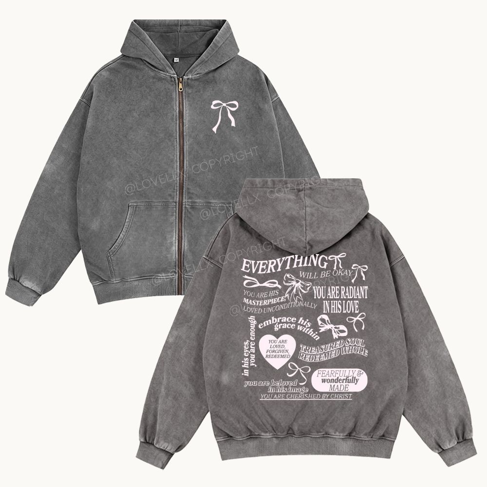 Everything Will Be Okay Unisex Washed Zip-Up Hoodie