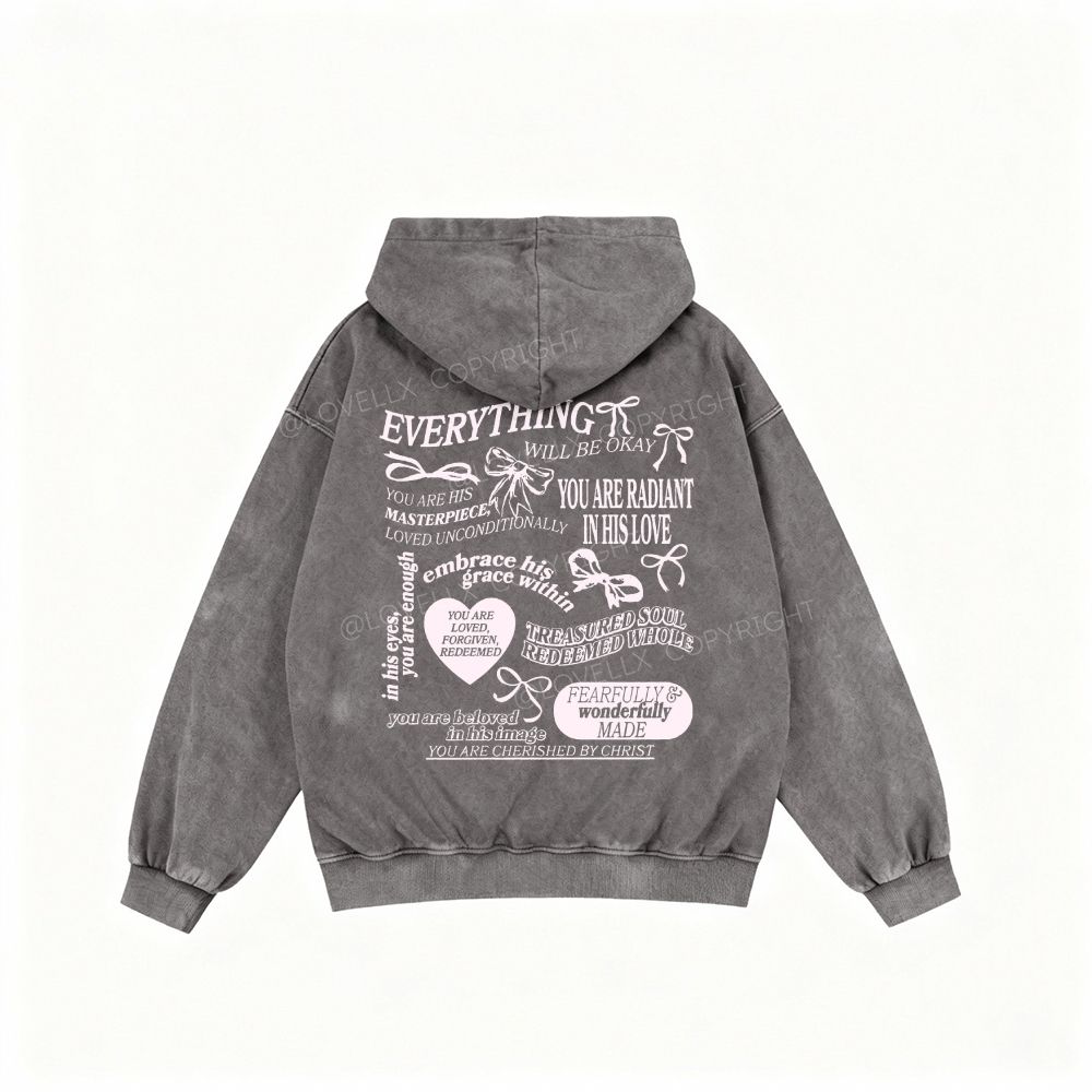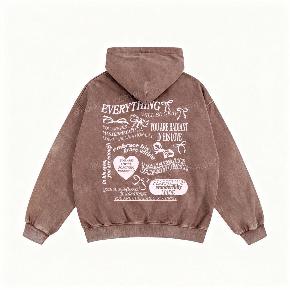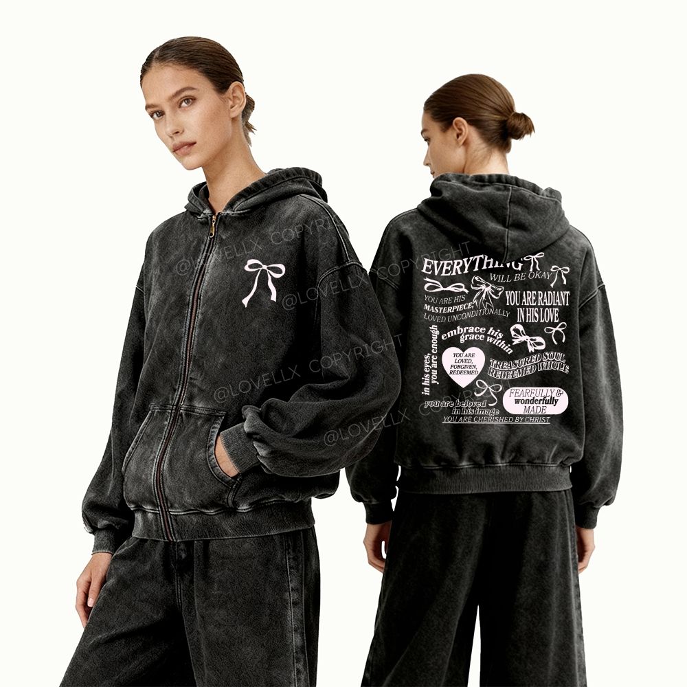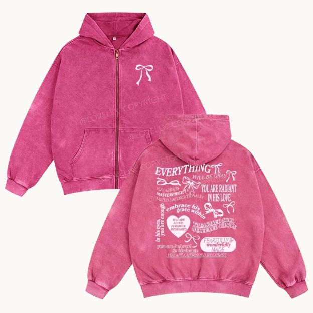 Everything Will Be Okay Unisex Washed Zip-Up Hoodie