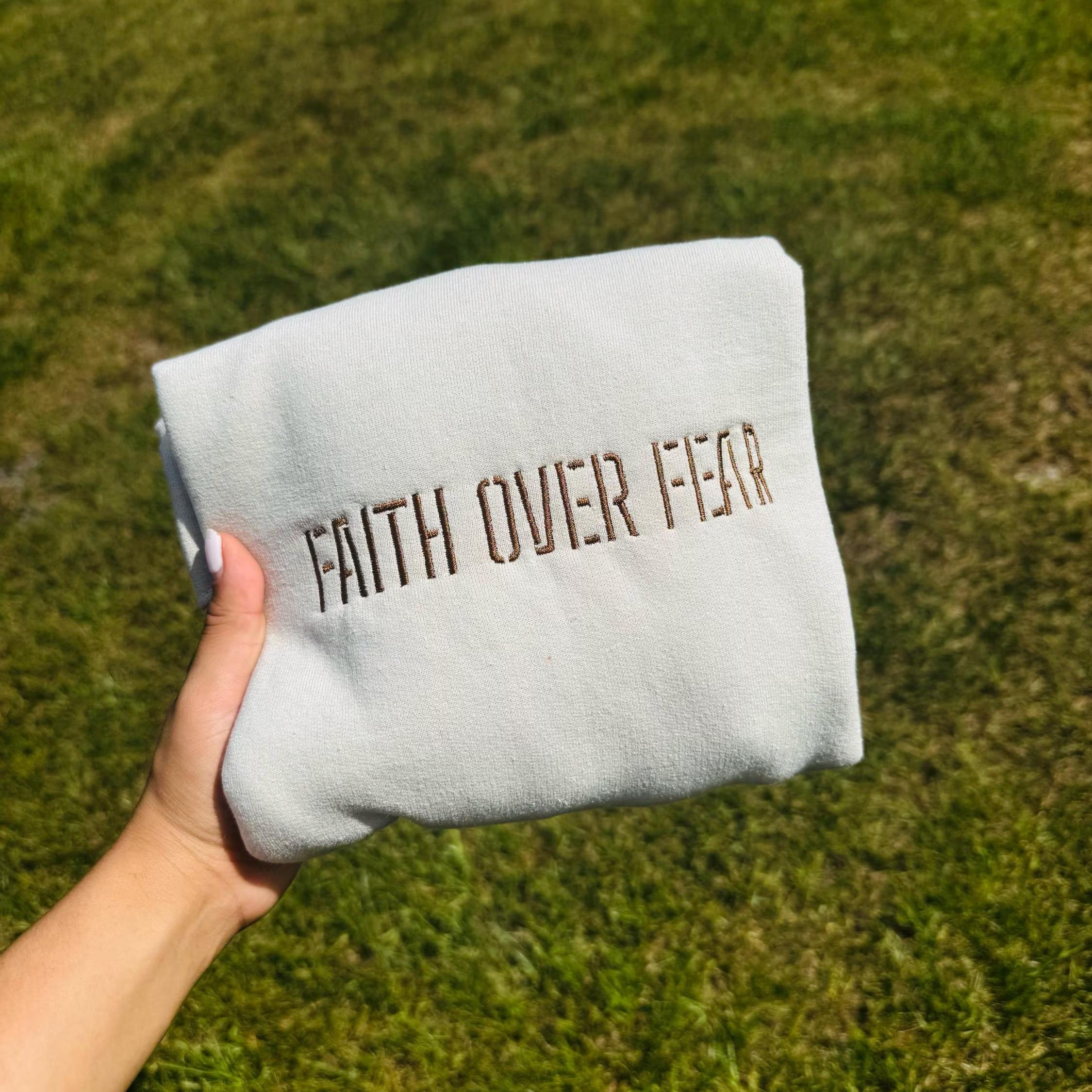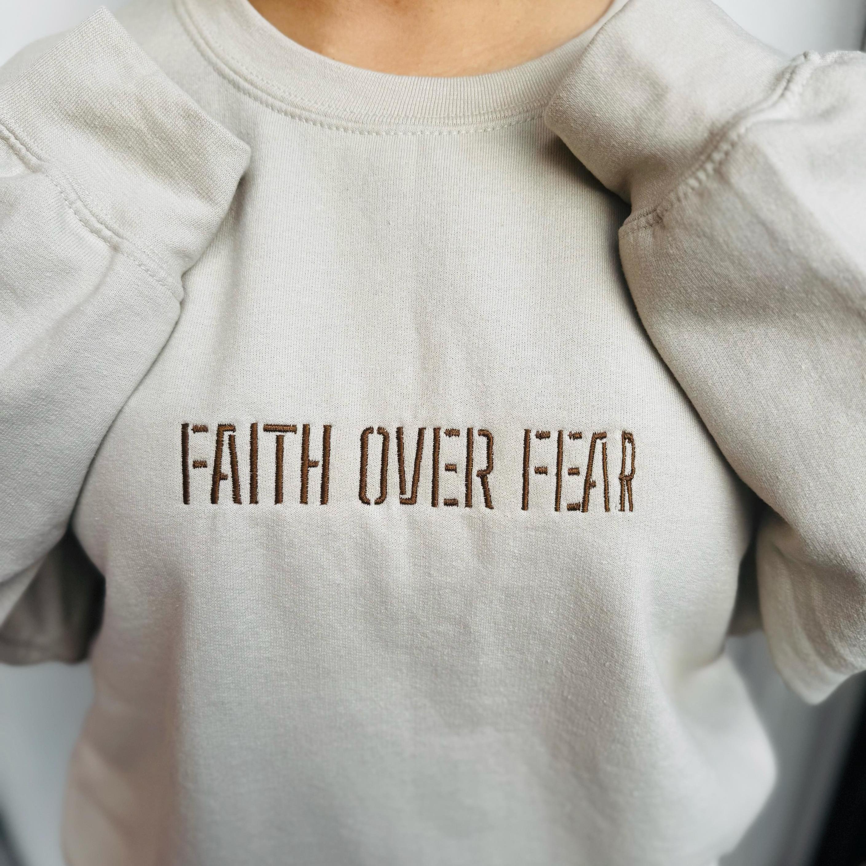 Faith Over Fear Embroidery Unisex Crewneck Sweatshirt