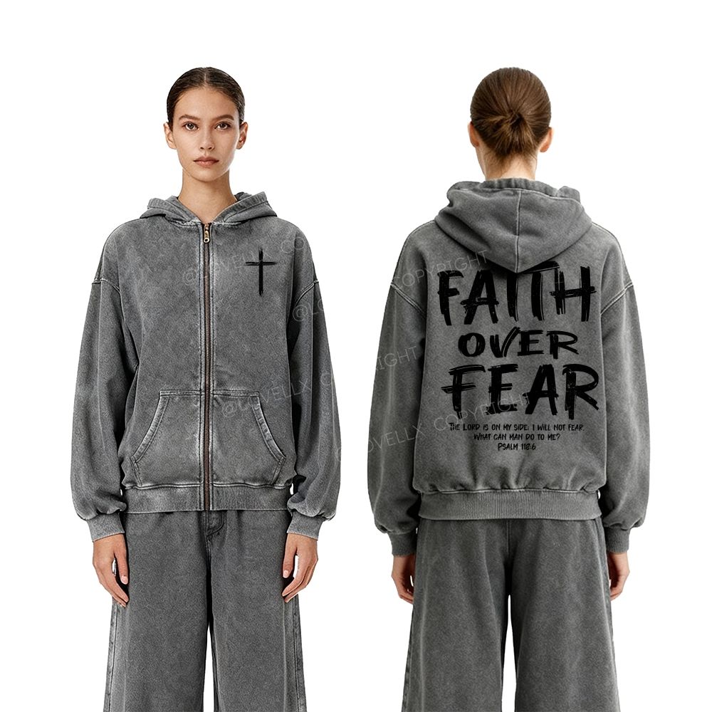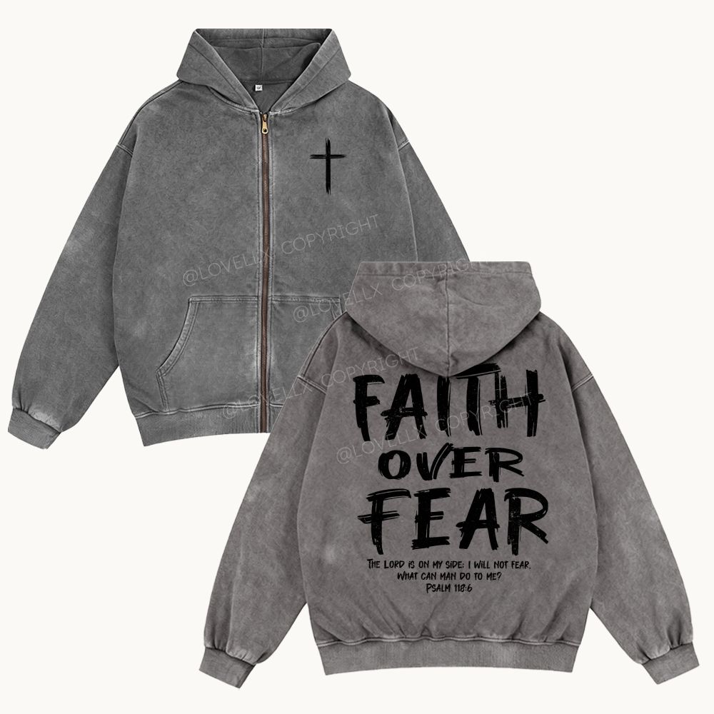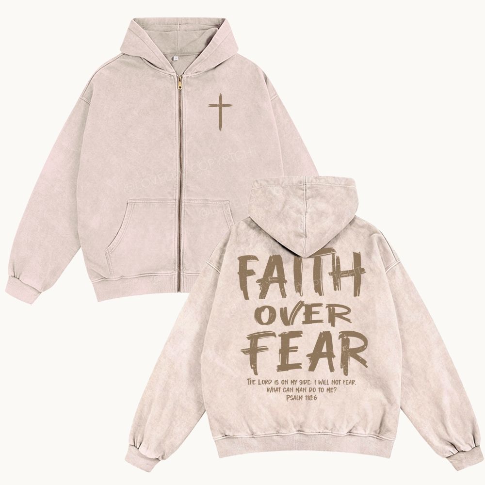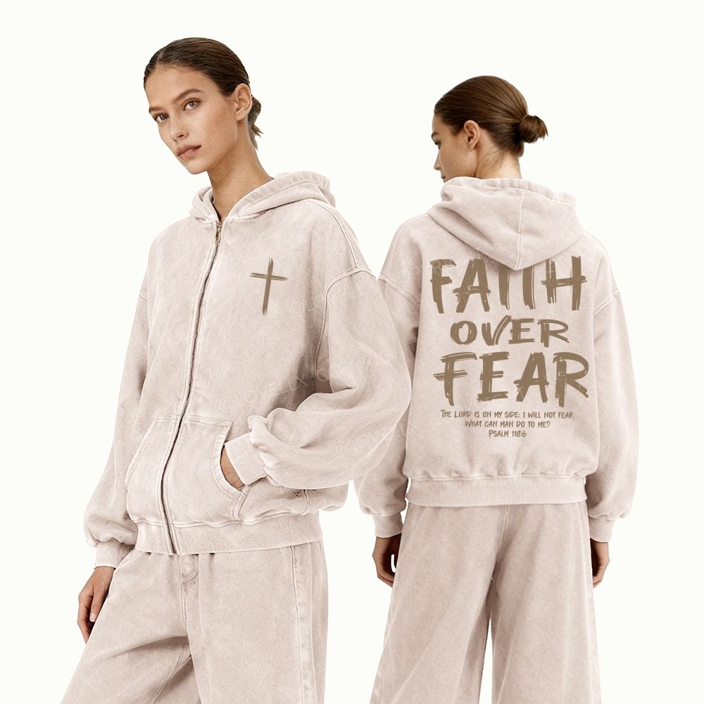 Faith Over Fear Unisex Washed Zip-Up Hoodie