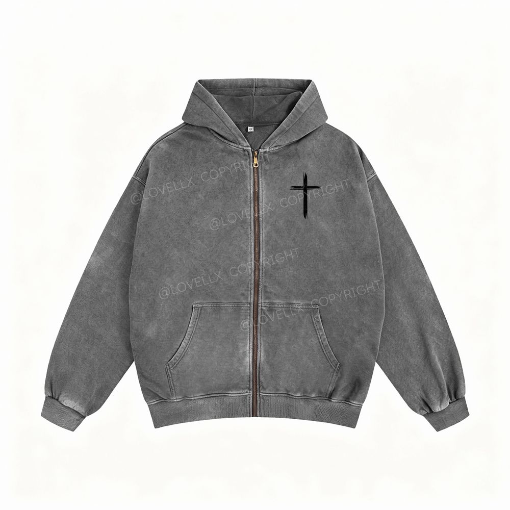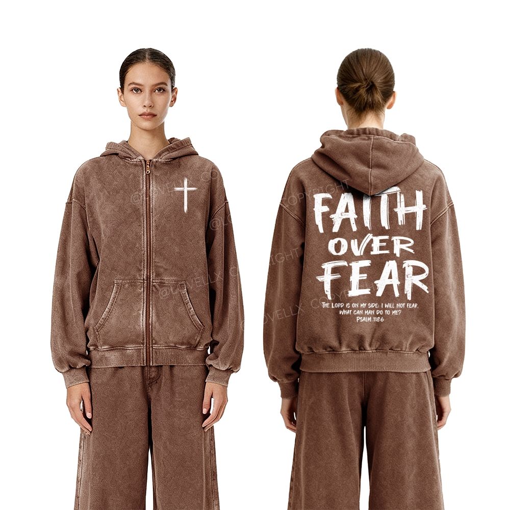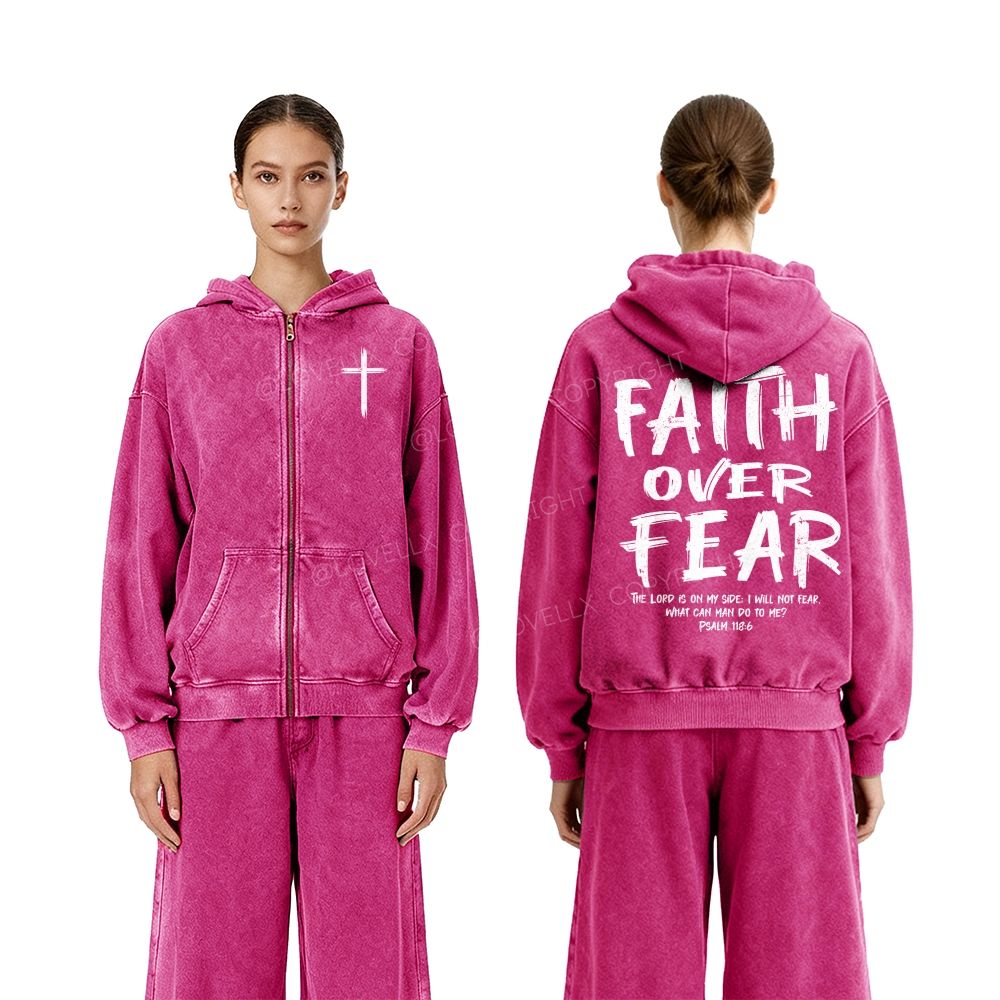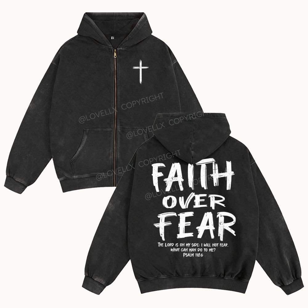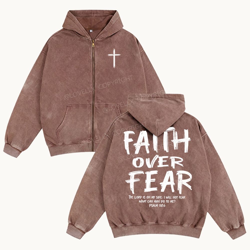 Faith Over Fear Unisex Washed Zip-Up Hoodie