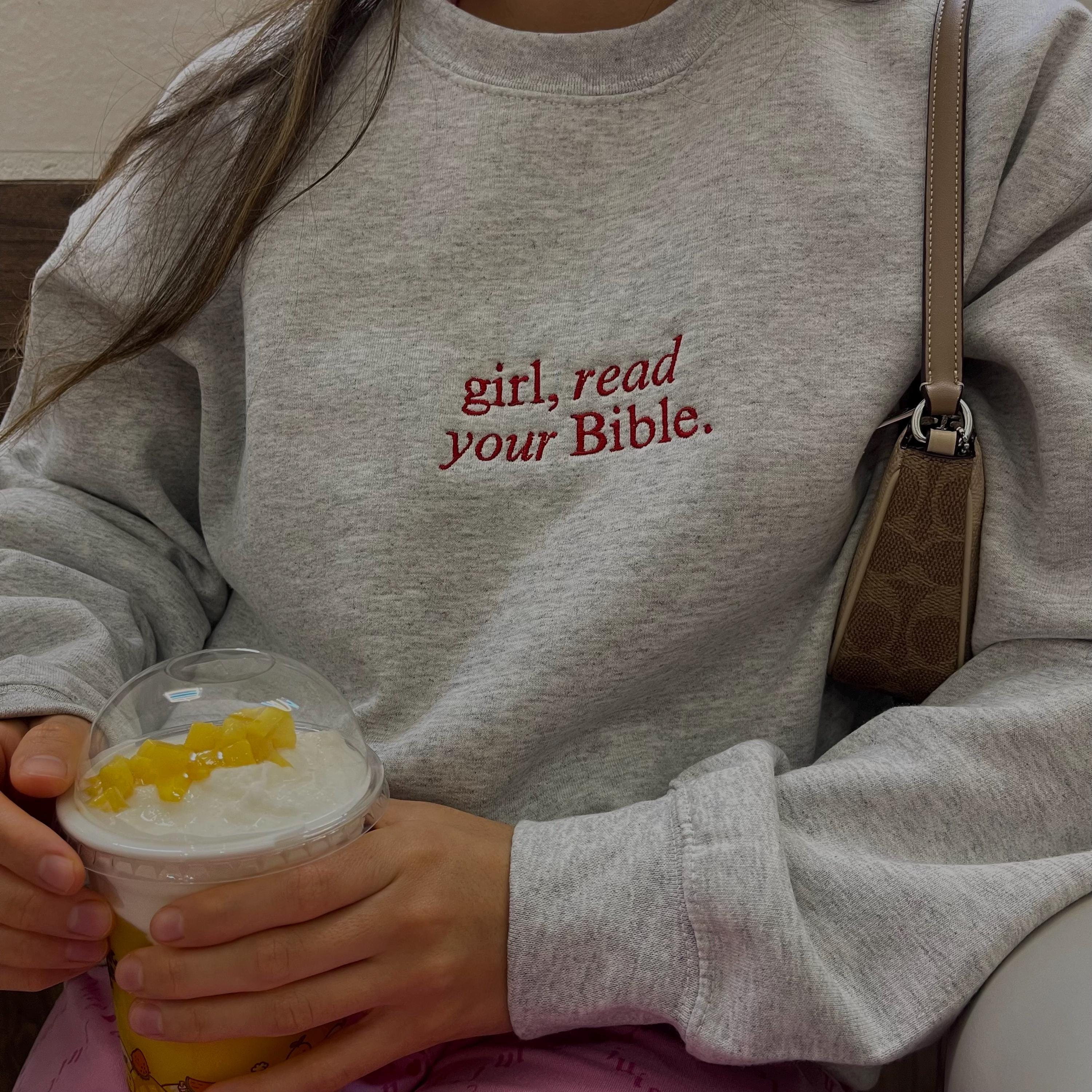 Girl Read Your Bible Embroidery Unisex Crewneck Sweatshirt