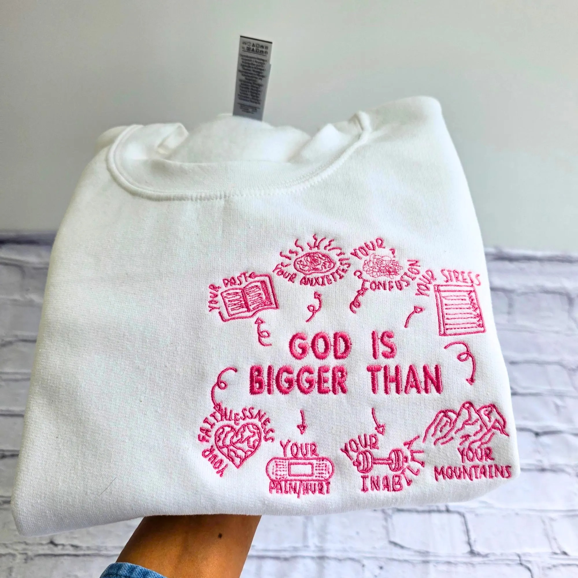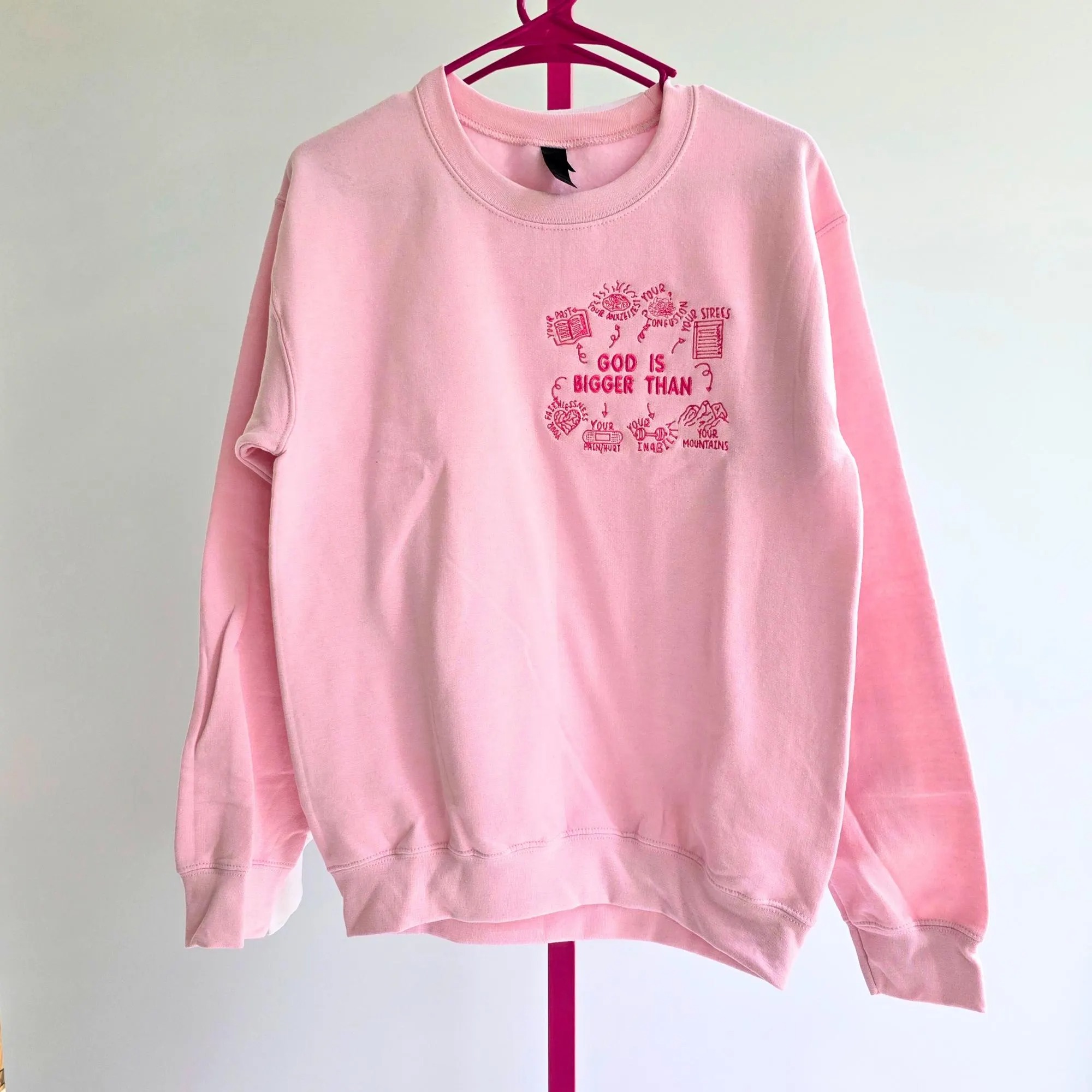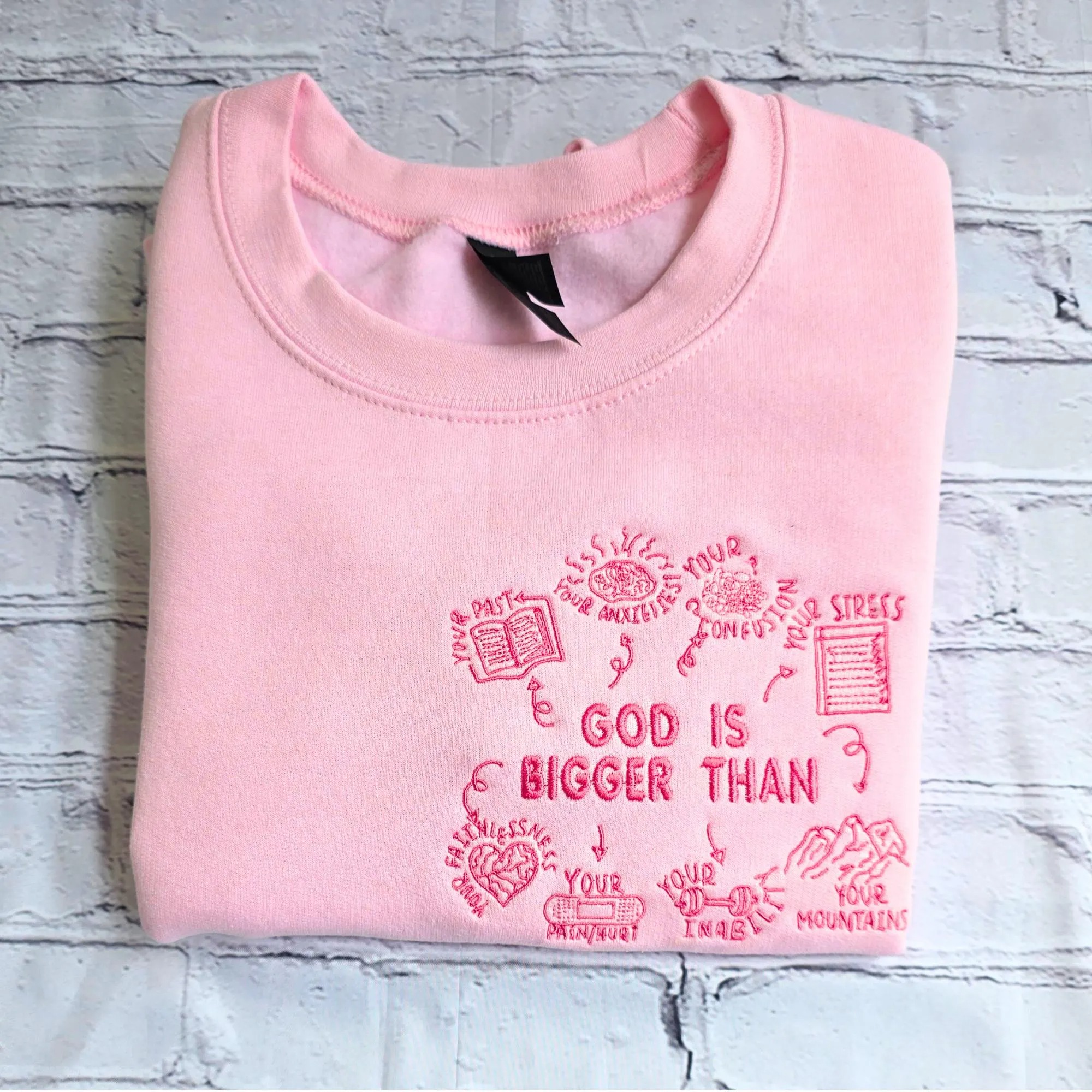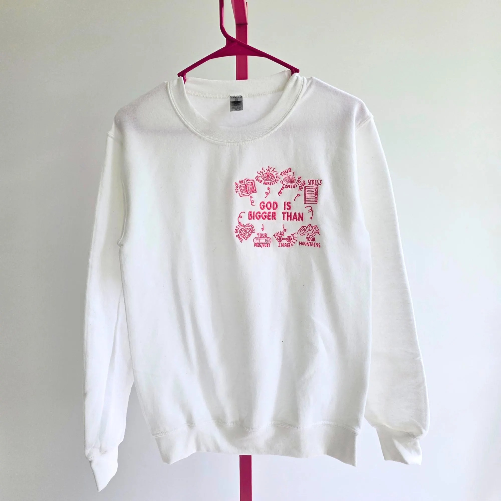 God Is Bigger Than Embroidery Unisex Crewneck Sweatshirt