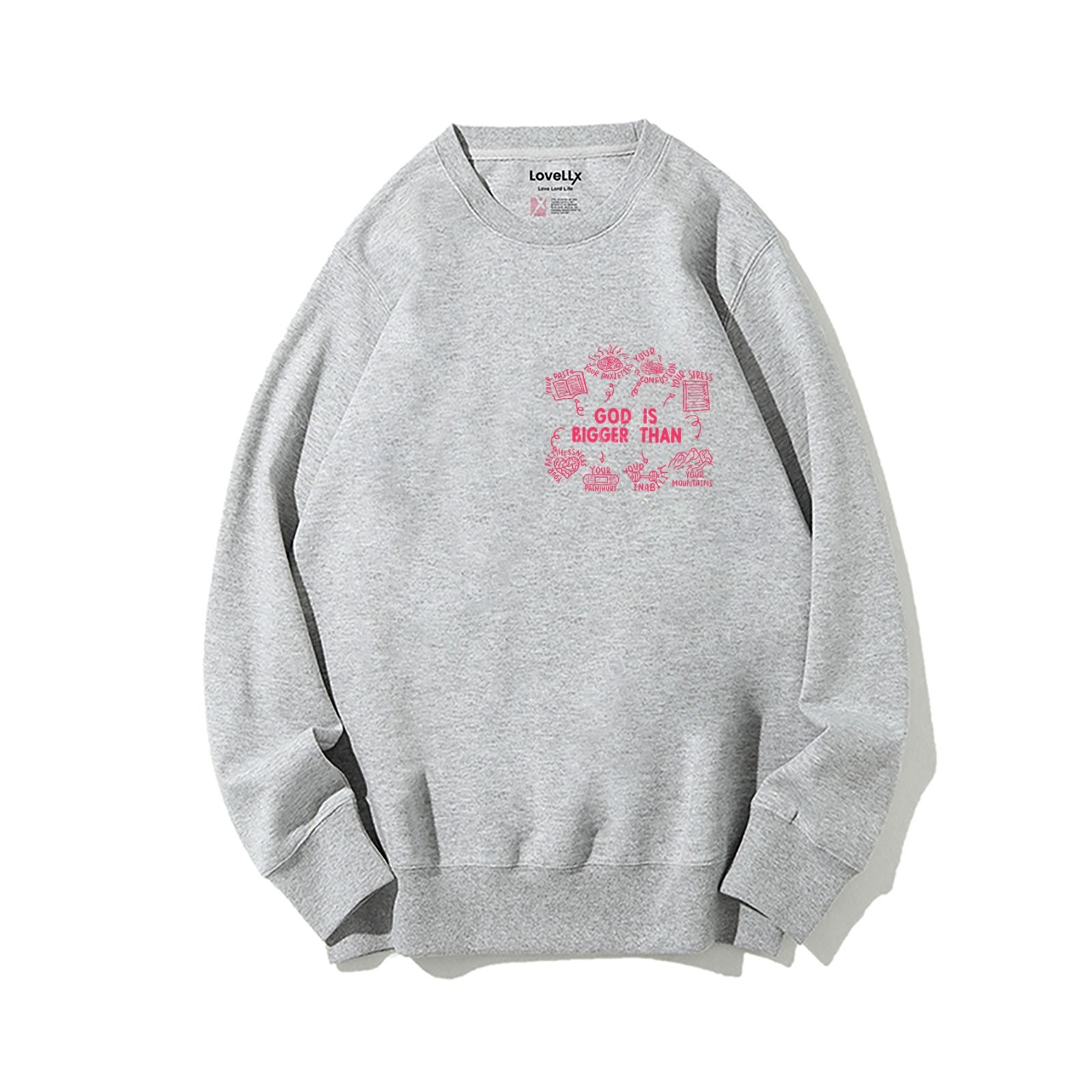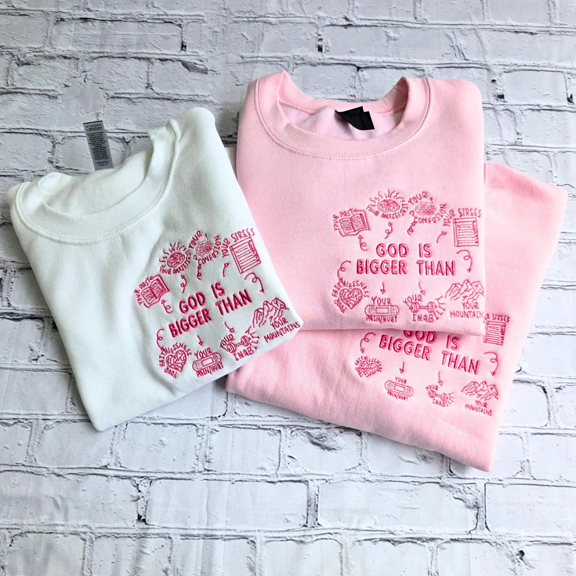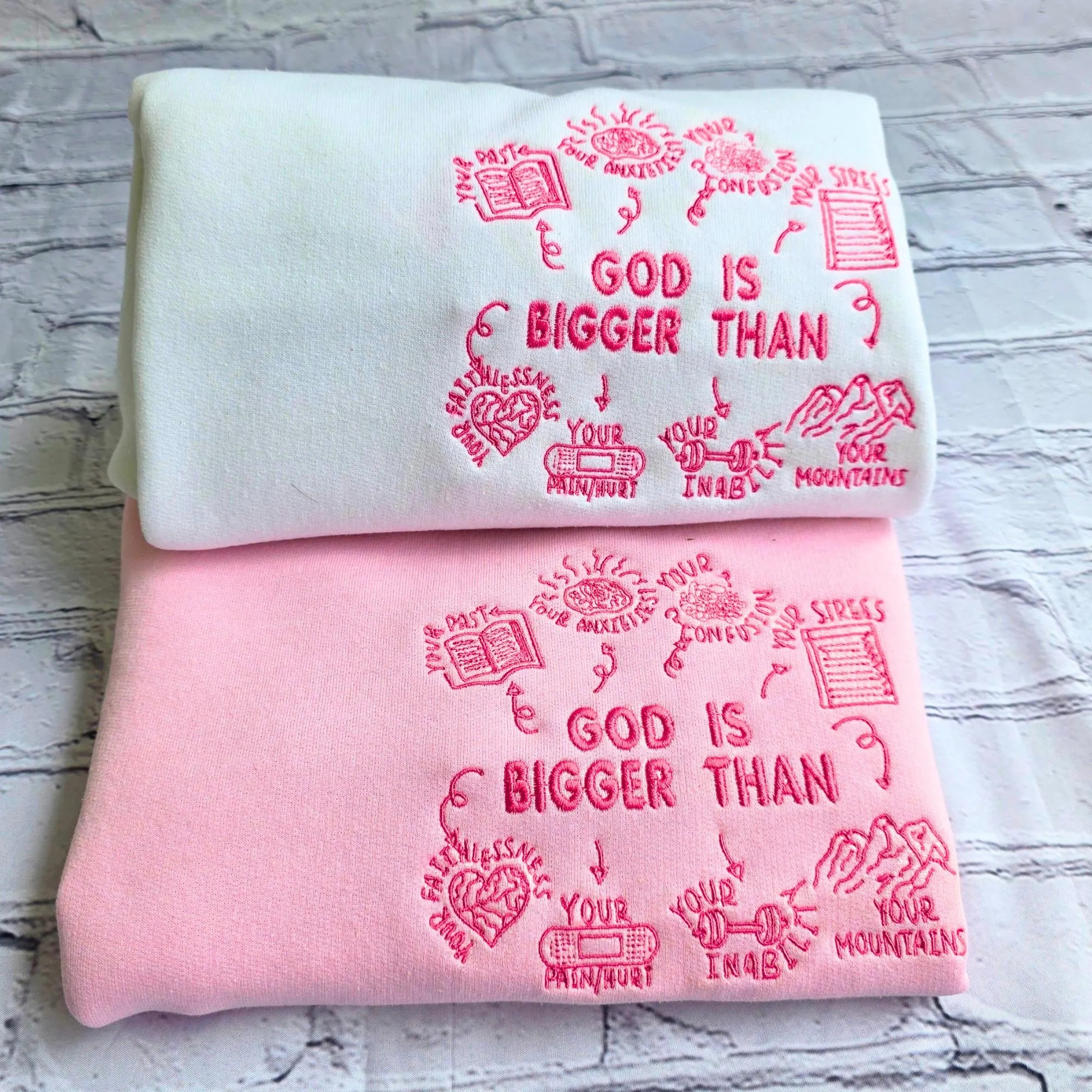 God Is Bigger Than Embroidery Unisex Crewneck Sweatshirt