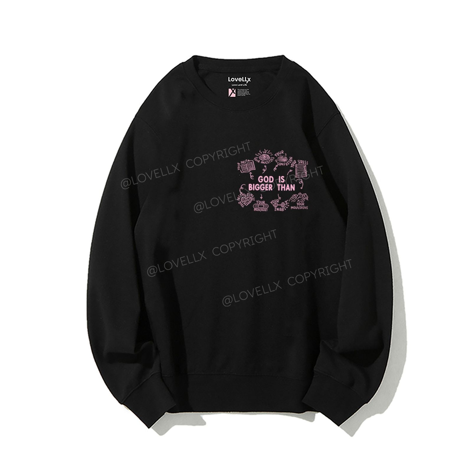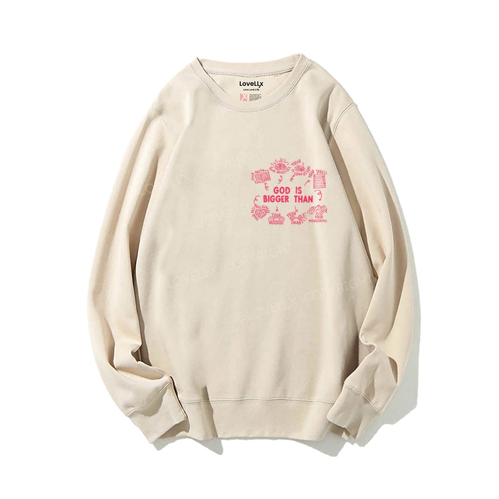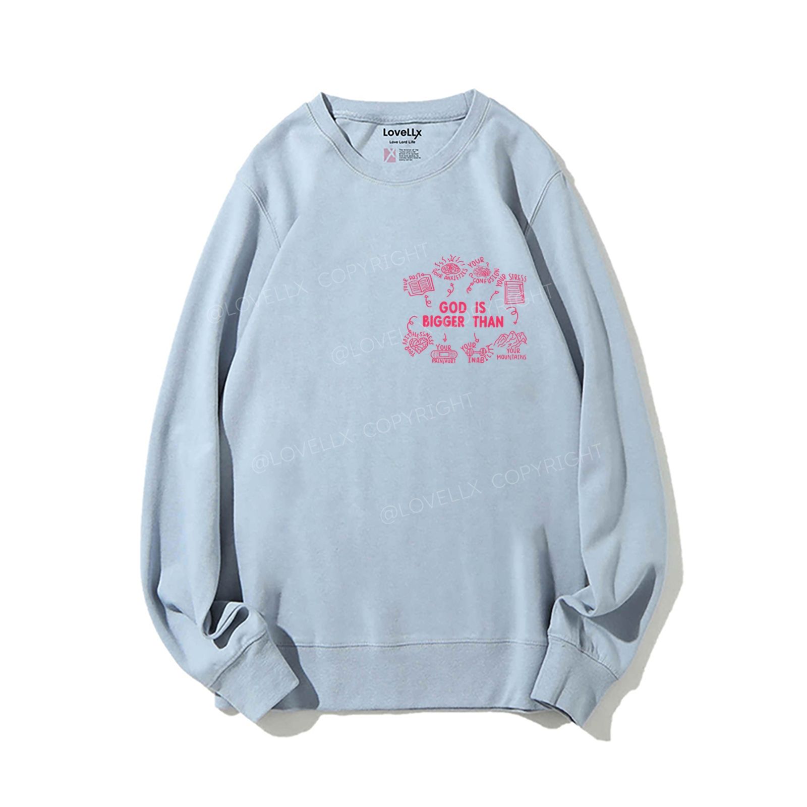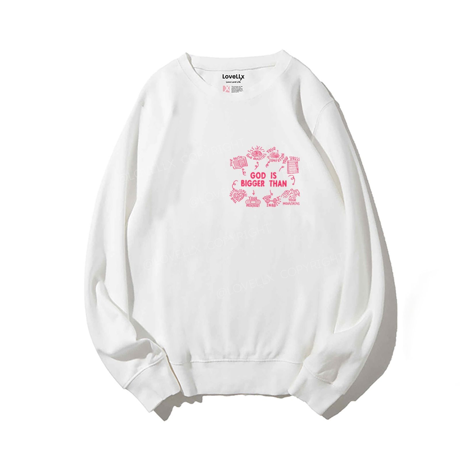 God Is Bigger Than Embroidery Unisex Crewneck Sweatshirt