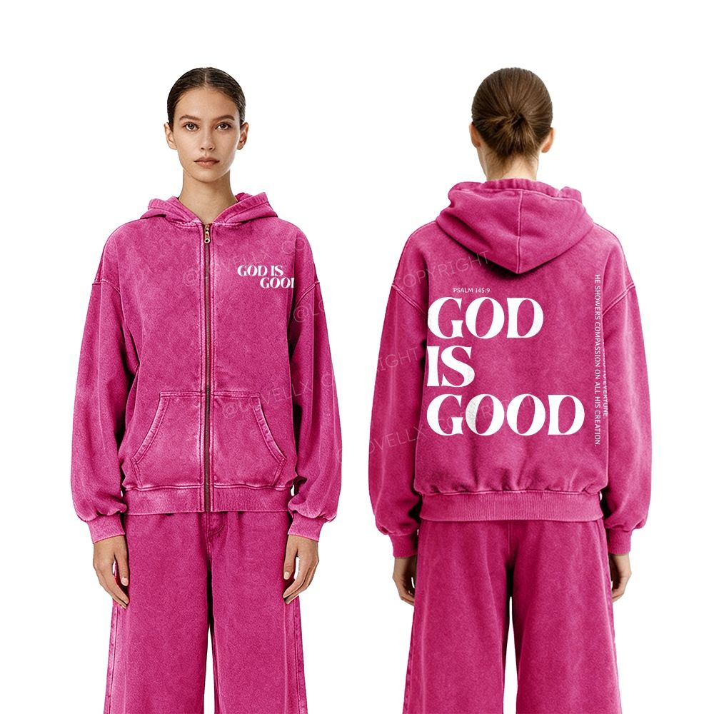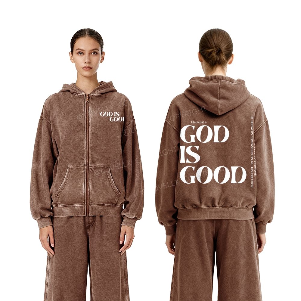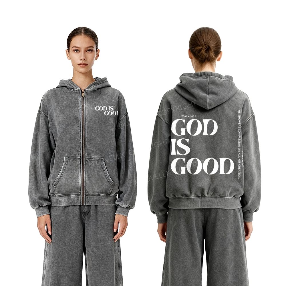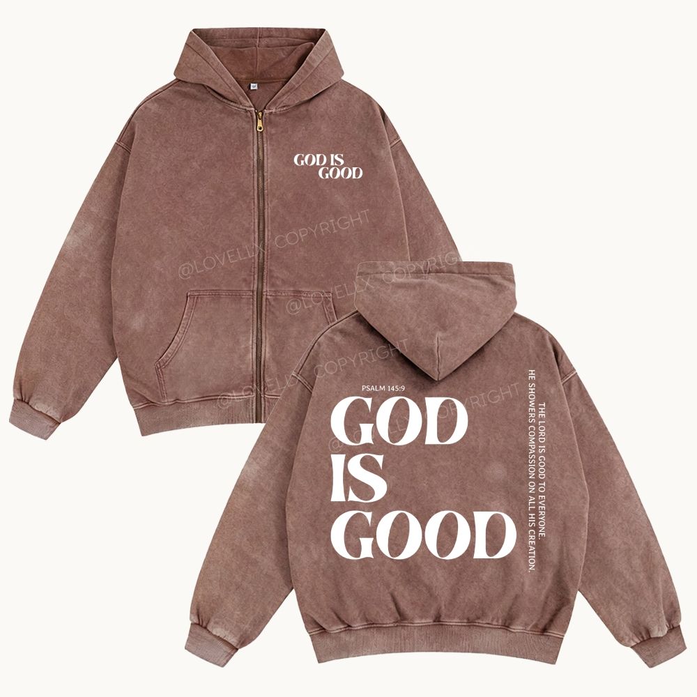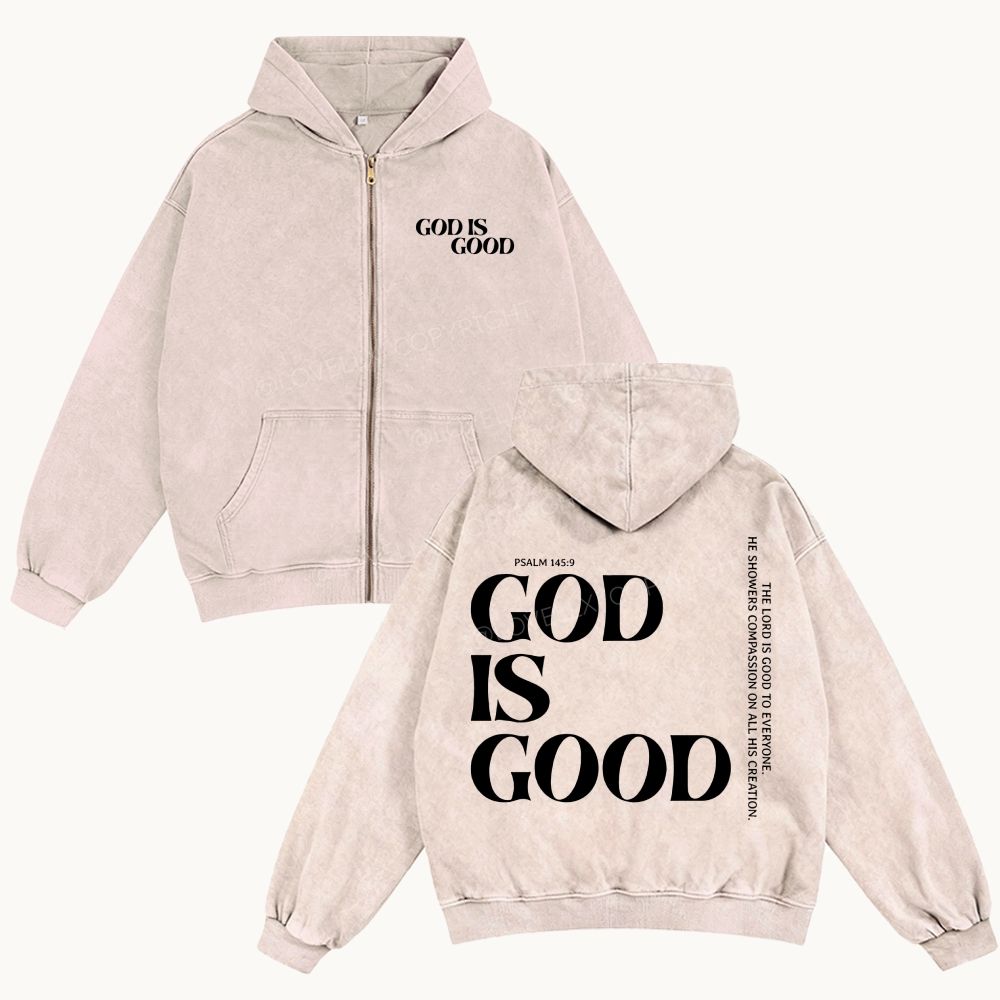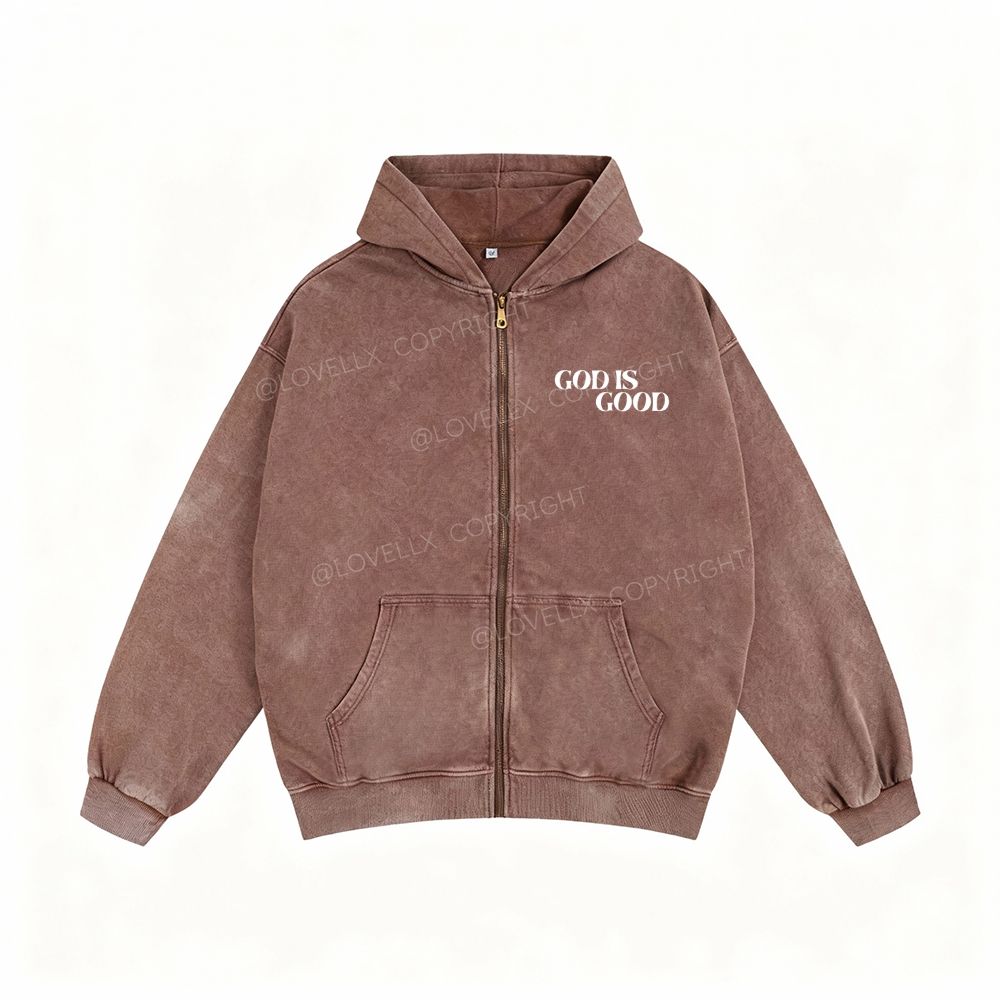 God Is Good Unisex Washed Zip-Up Hoodie