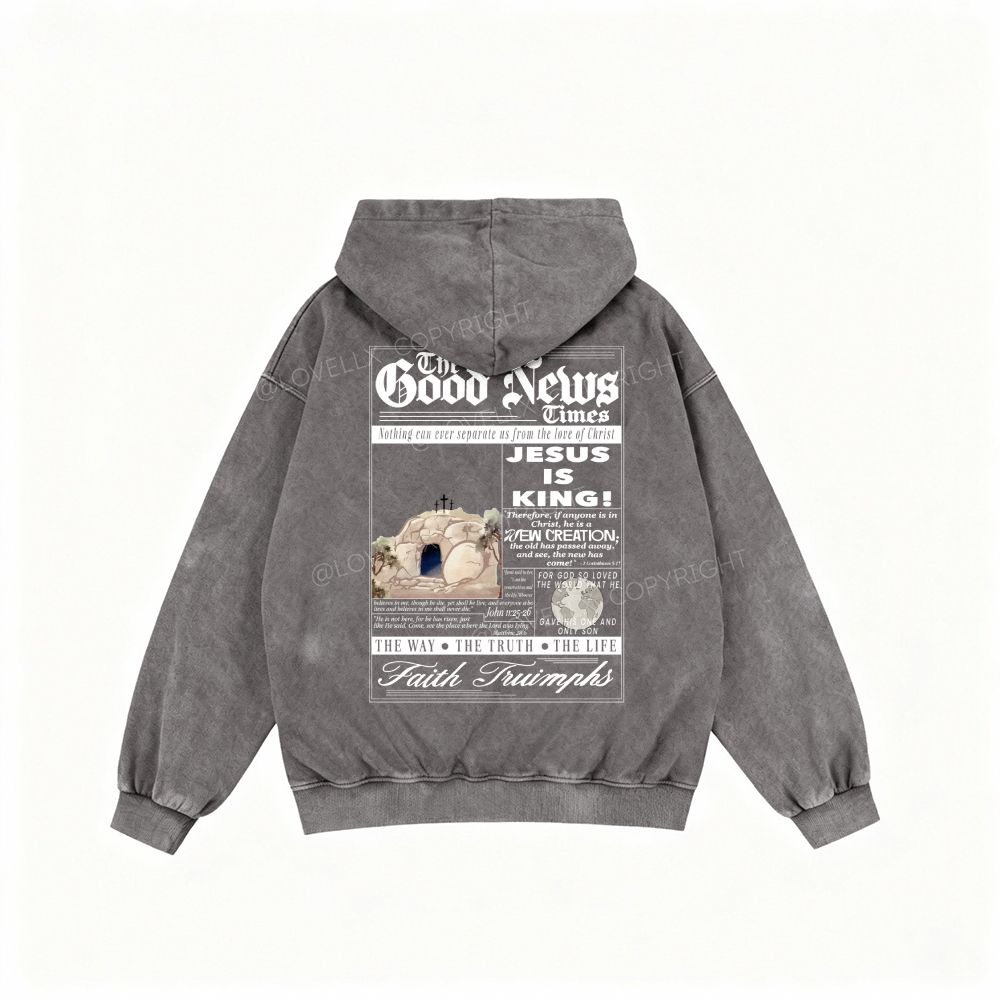 Good News Unisex Washed Zip-Up Hoodie