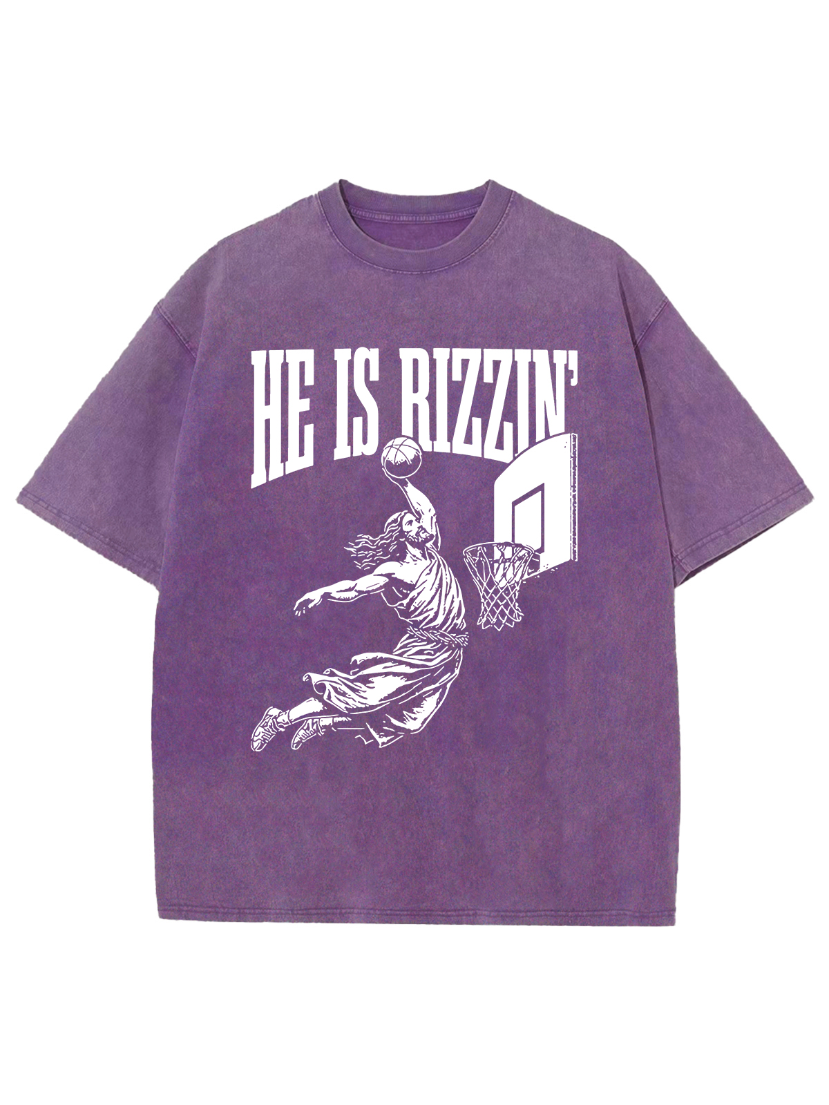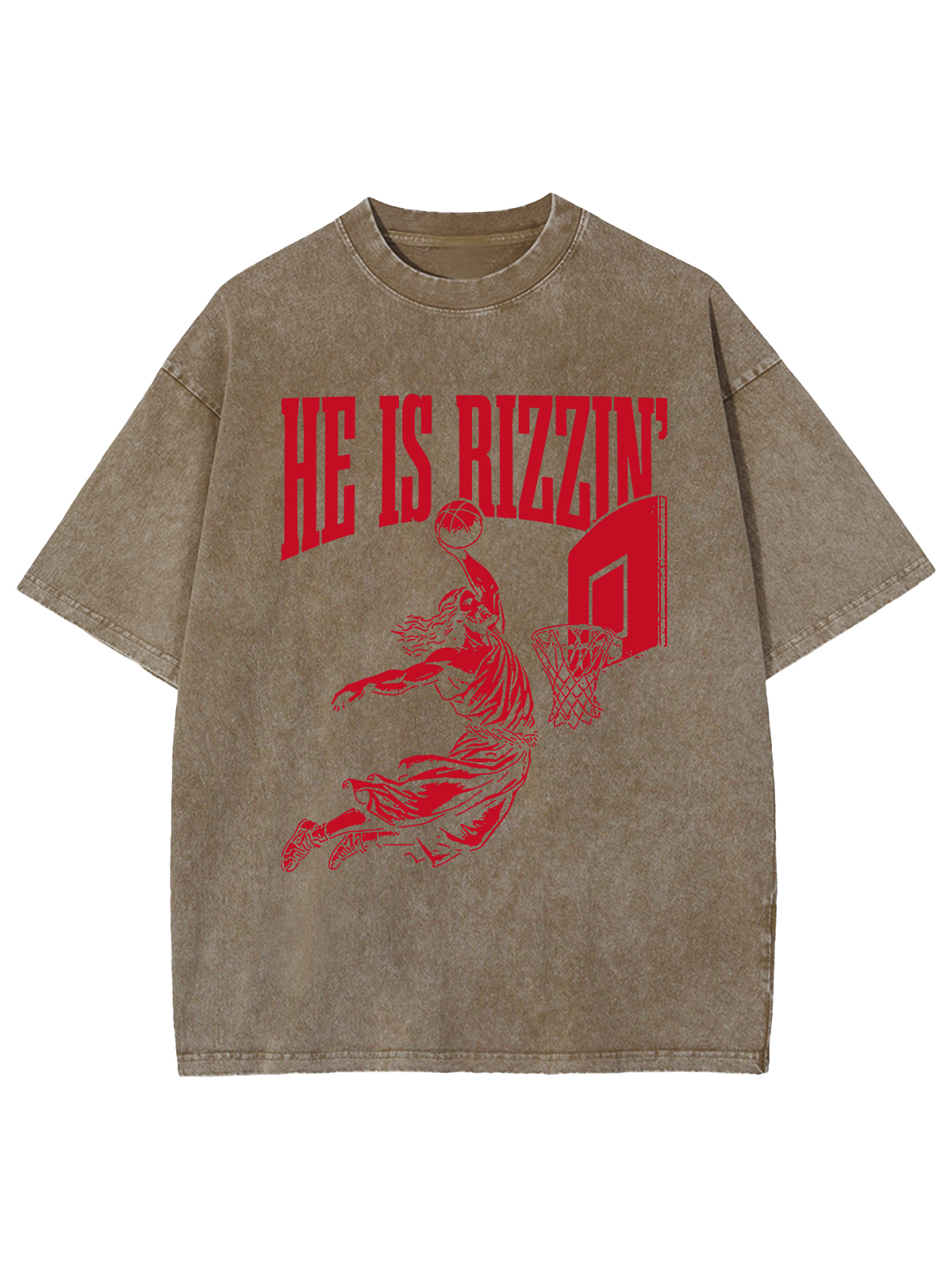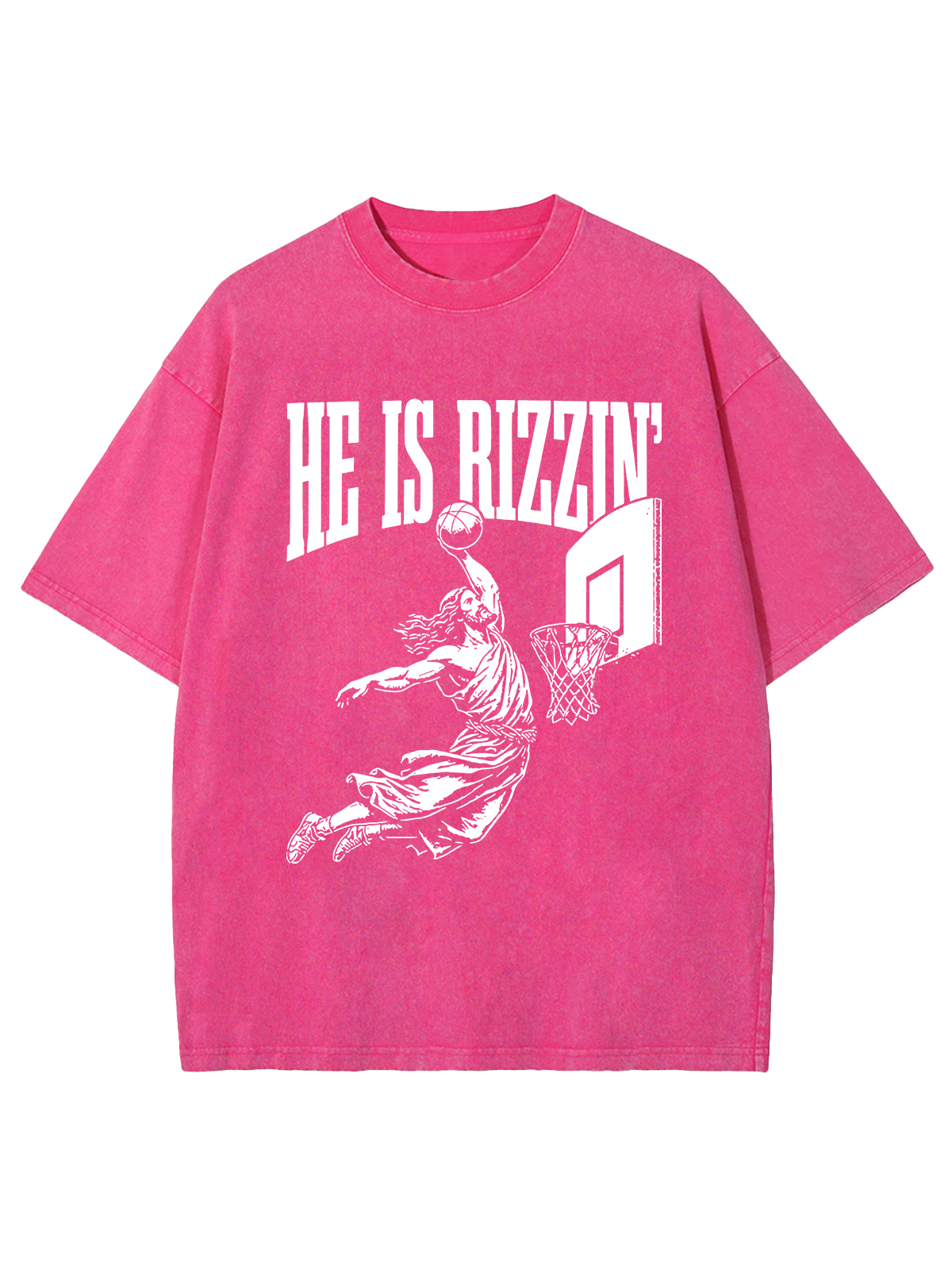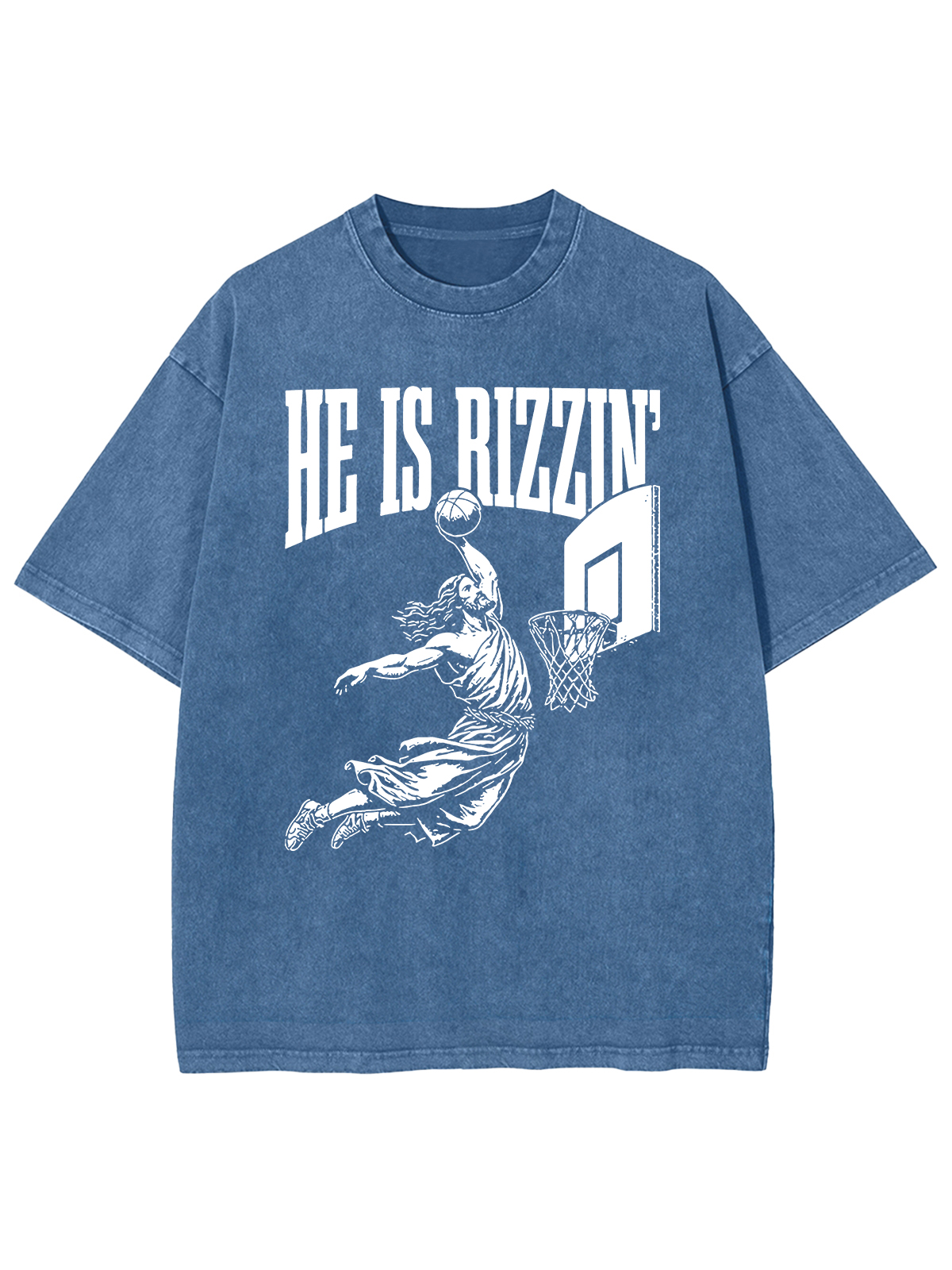This design features a dynamic basketball slam dunk with the phrase "HE IS RIZZIN'," representing the powerful and triumphant rise of Jesus, much like a victorious play in basketball. Just as a dunk is a display of strength and skill, Jesus'resurrection was a powerful demonstration of divine power and victory over death.
