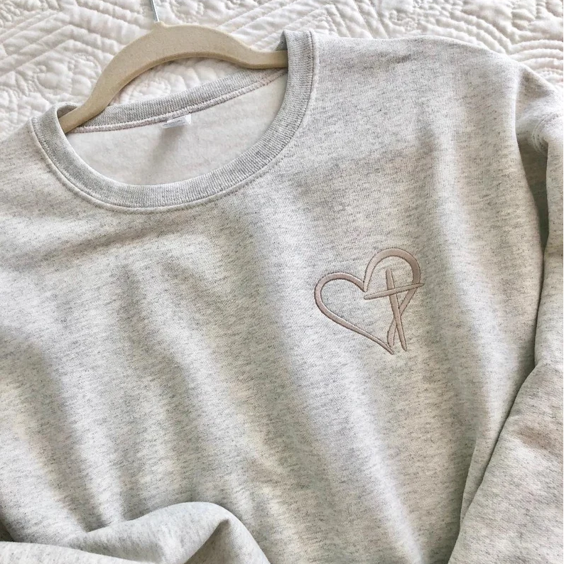 Heart&Cross Embroidery Unisex Crewneck Sweatshirt