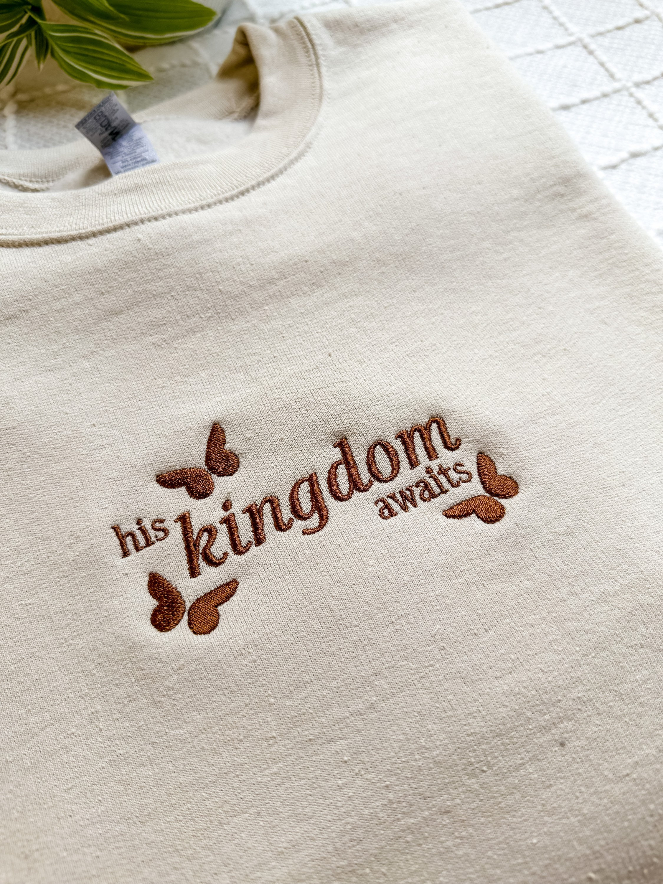 His Kingdom Awaits Unisex Embroidered Cotton Sweatshirt
