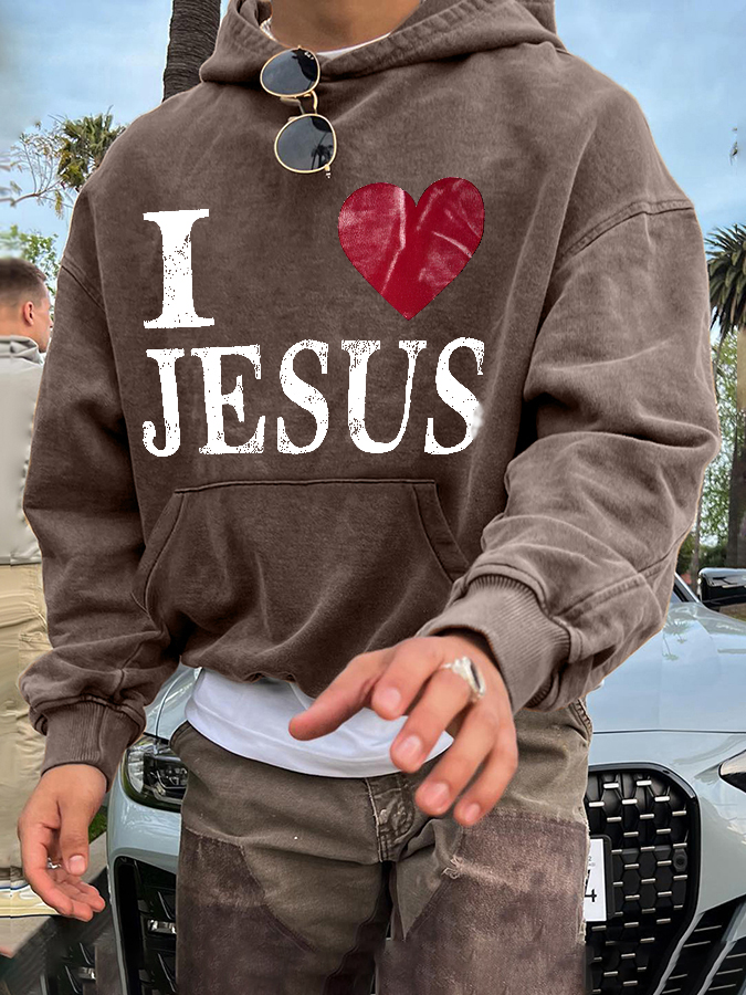I Love Jesus Unisex Washed Hoodie