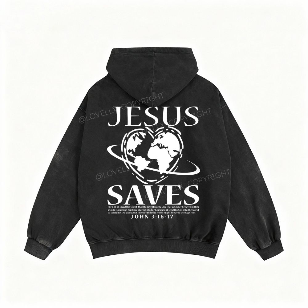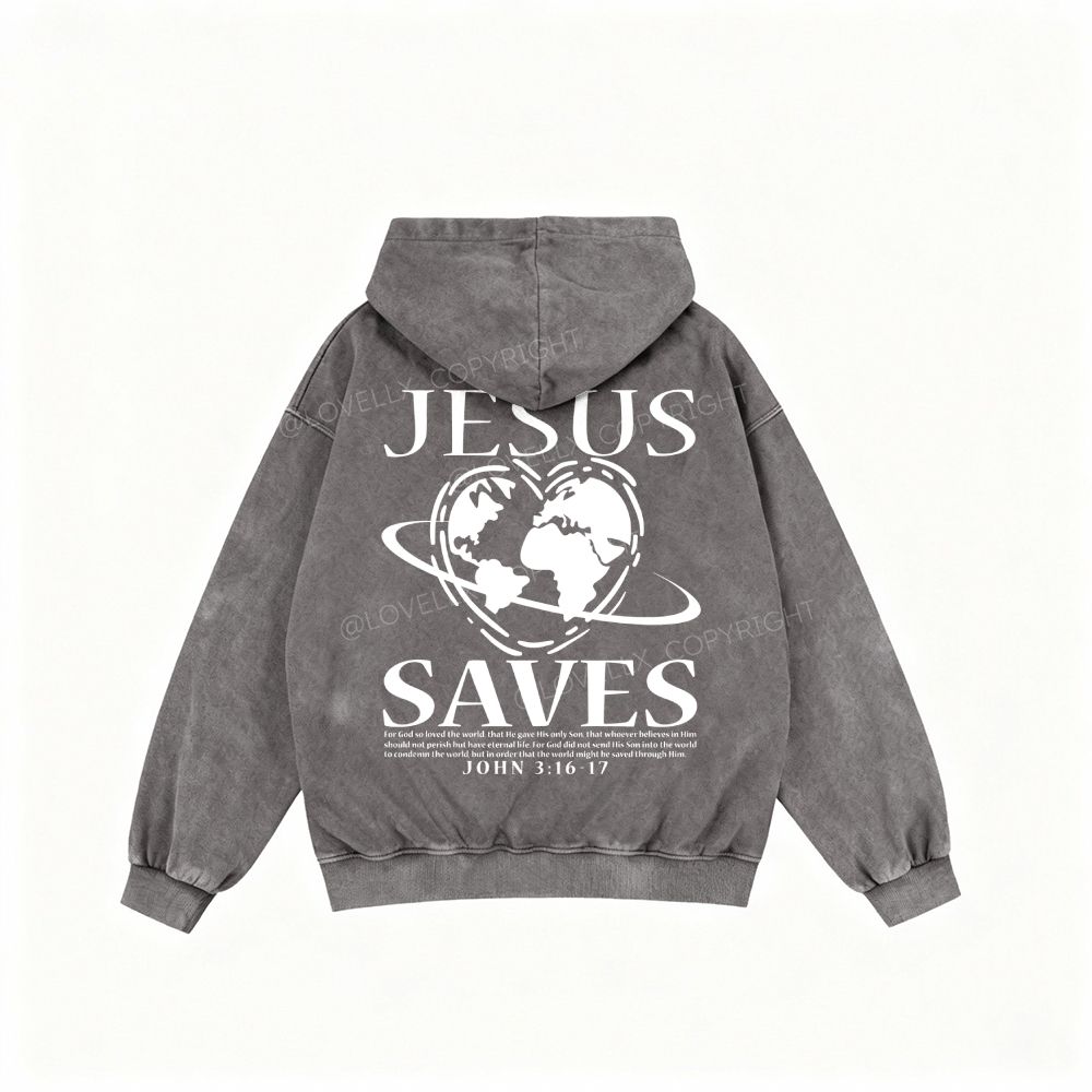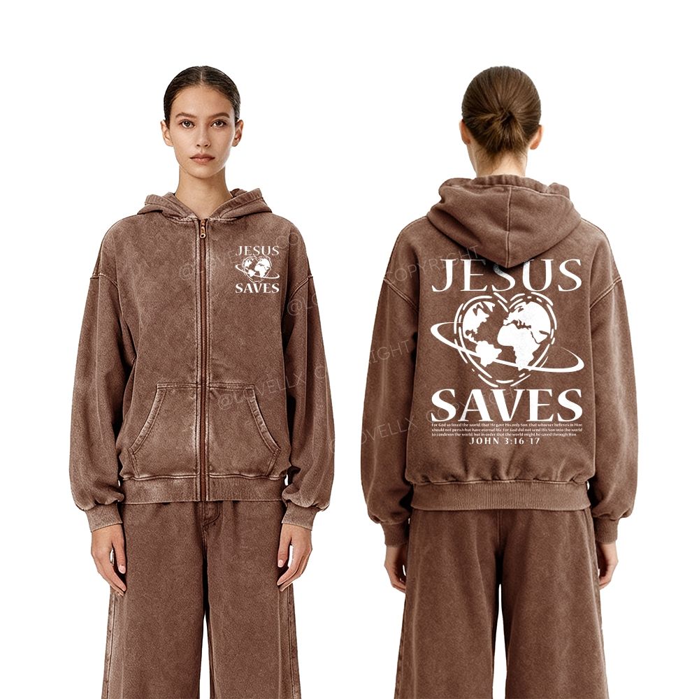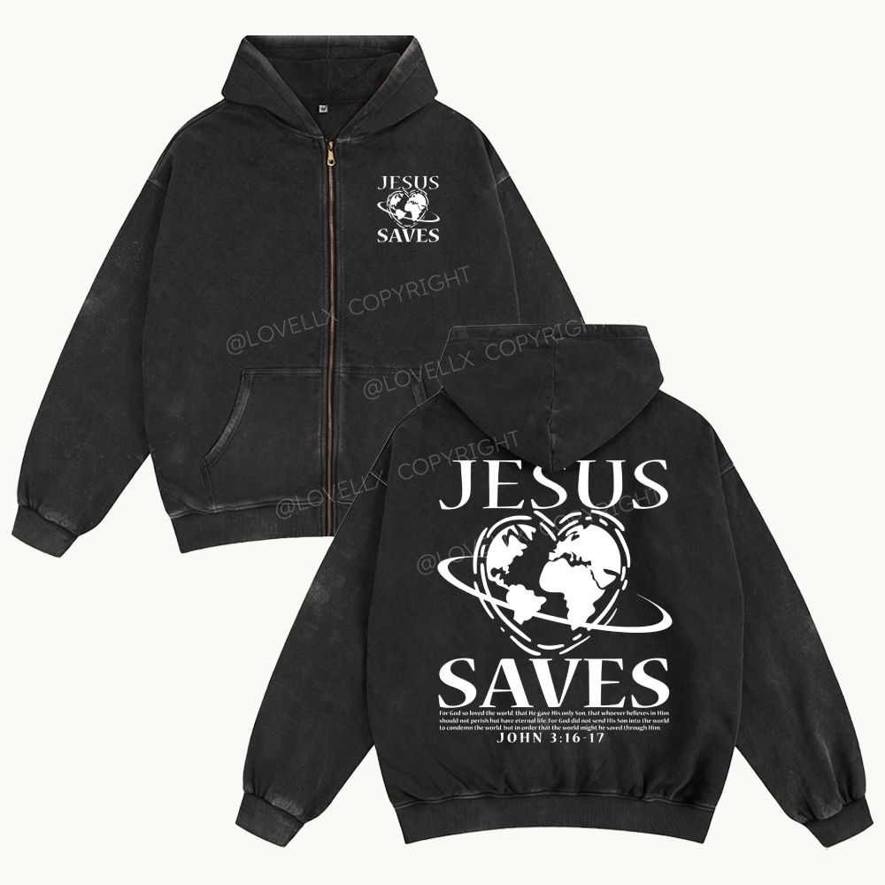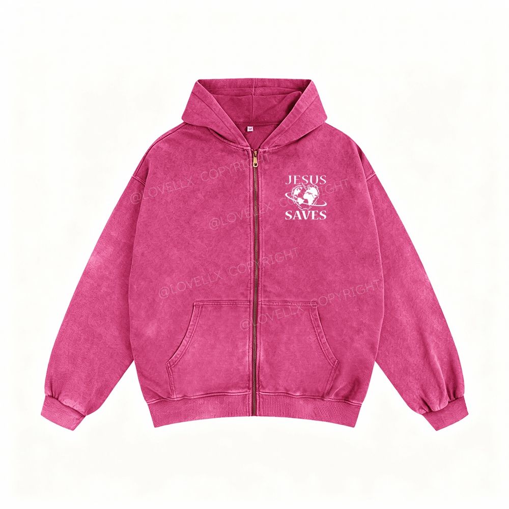 Jesus Saves Unisex Washed Zip-Up Hoodie