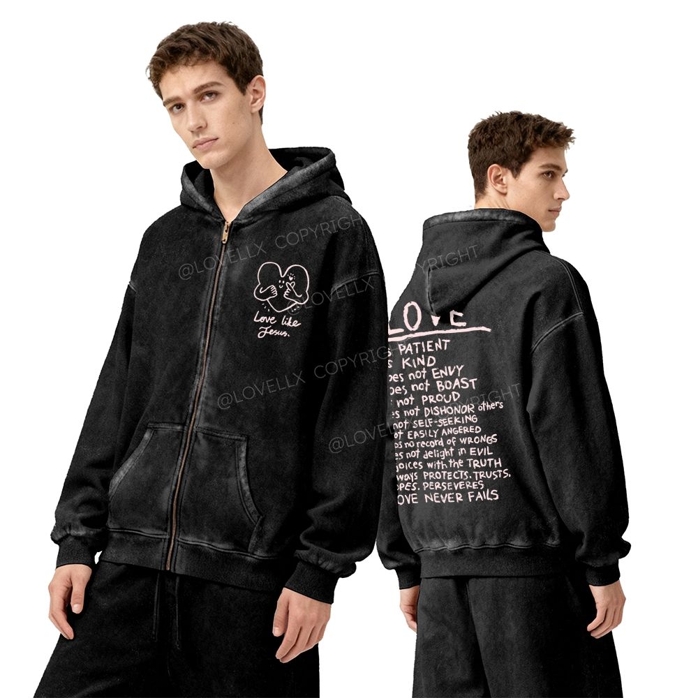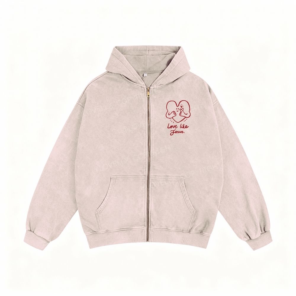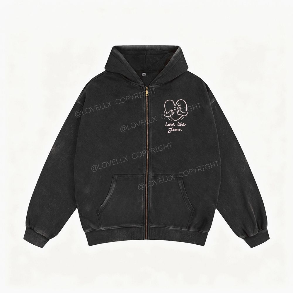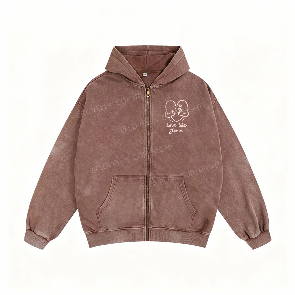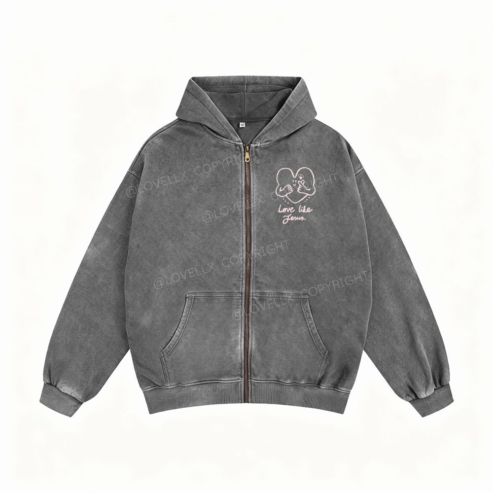 Love Like Jesus Unisex Washed Zip-Up Hoodie