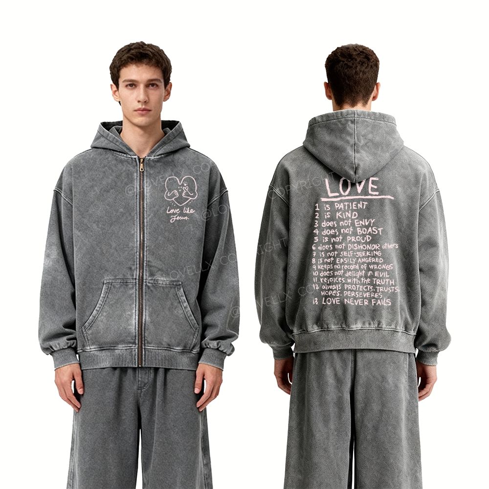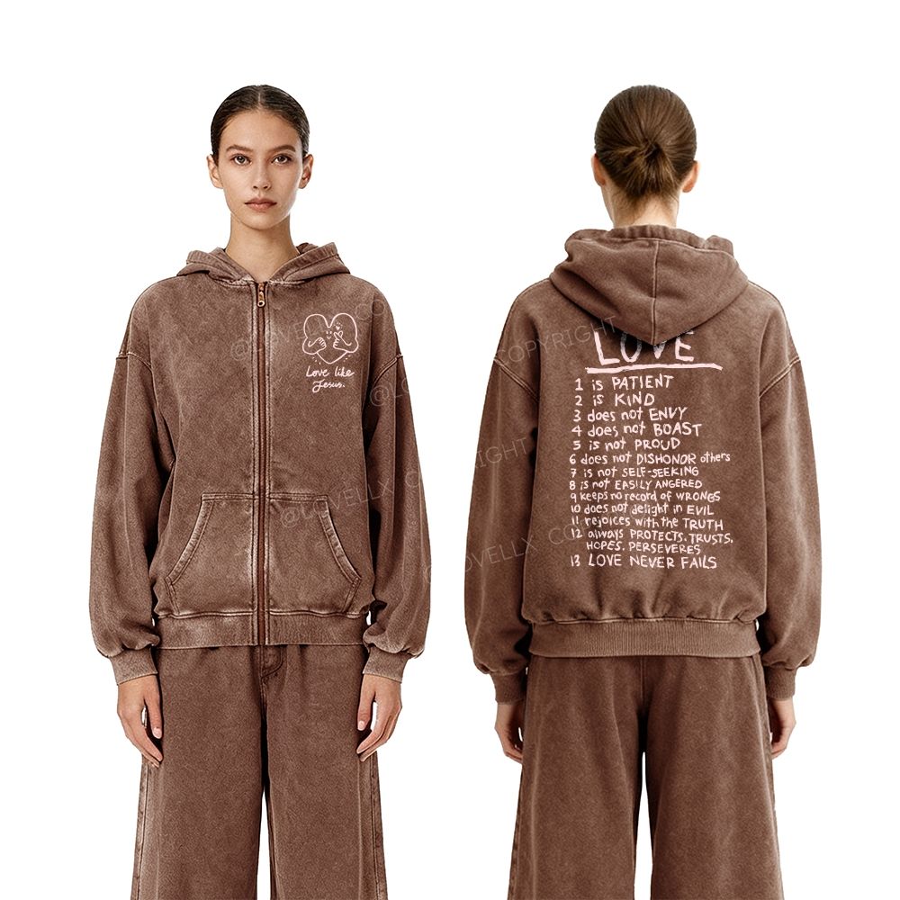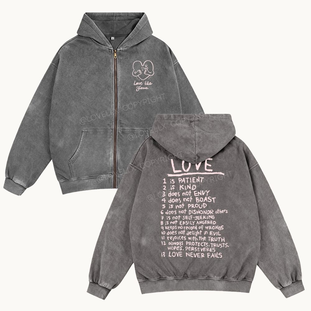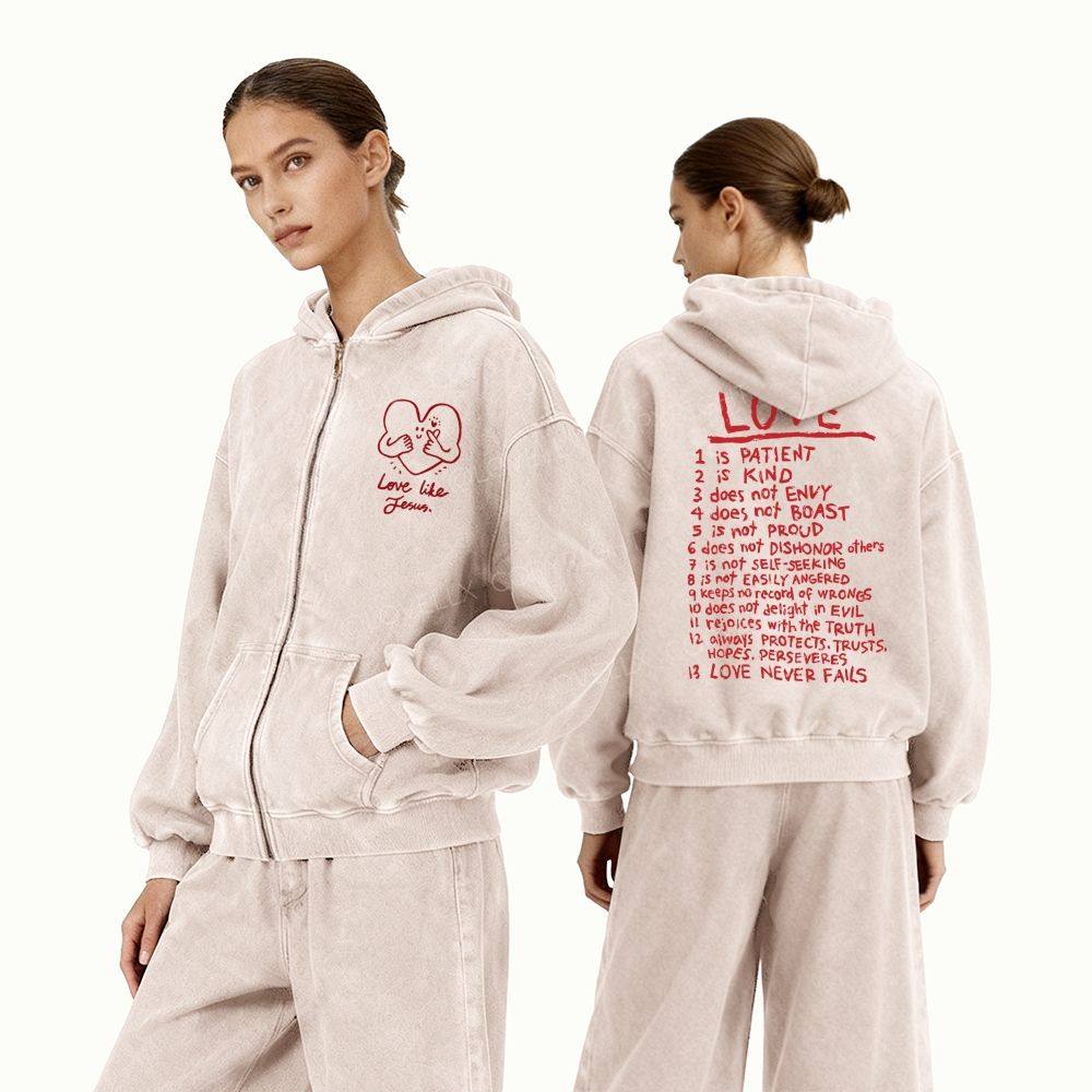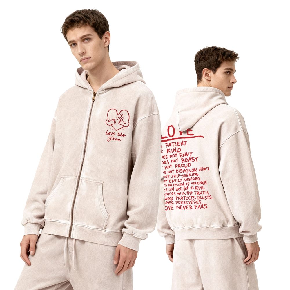 Love Like Jesus Unisex Washed Zip-Up Hoodie