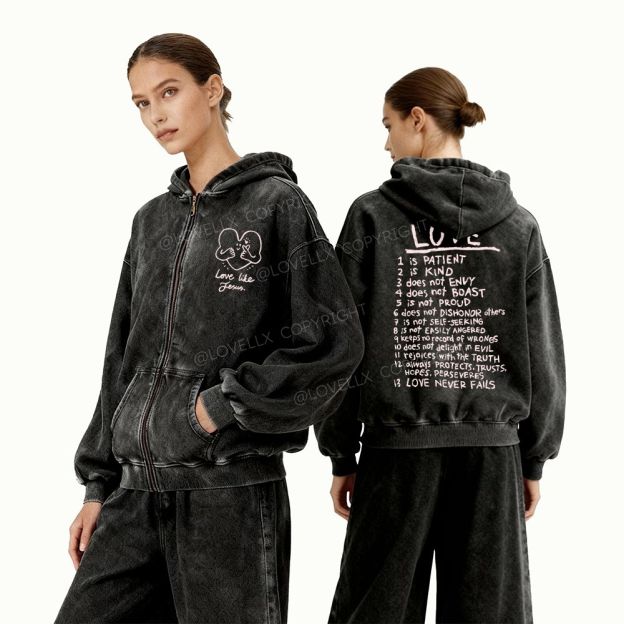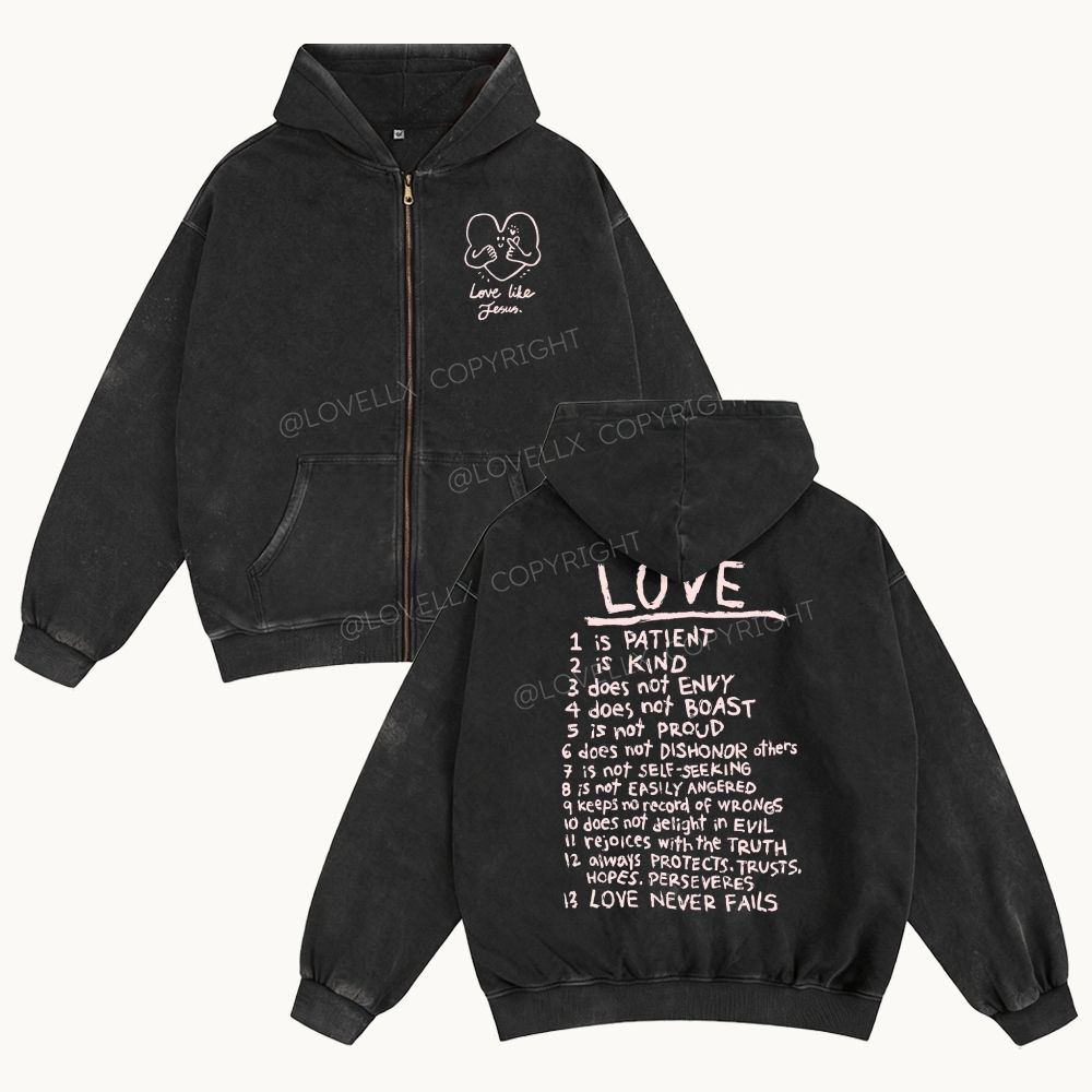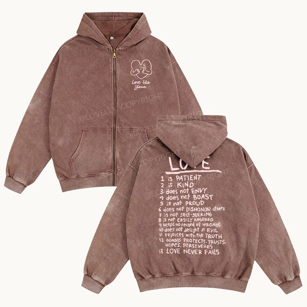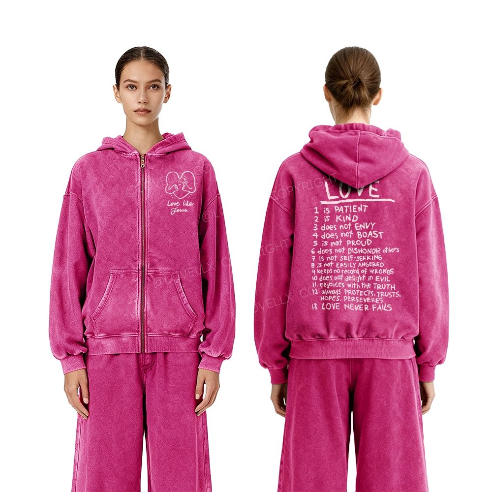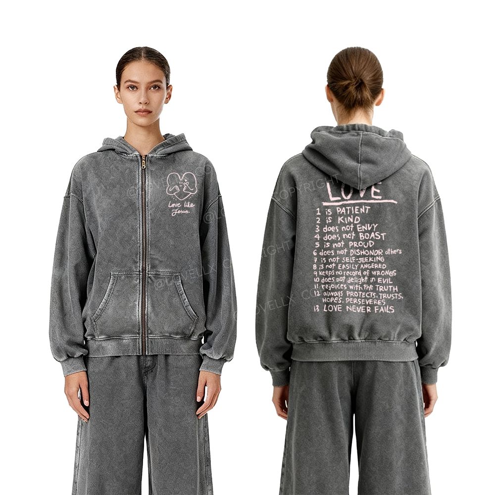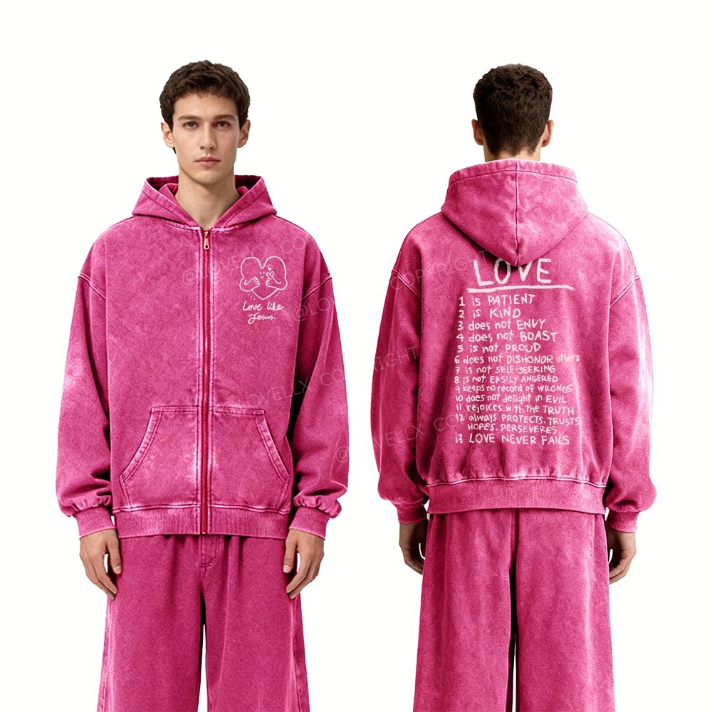 Love Like Jesus Unisex Washed Zip-Up Hoodie