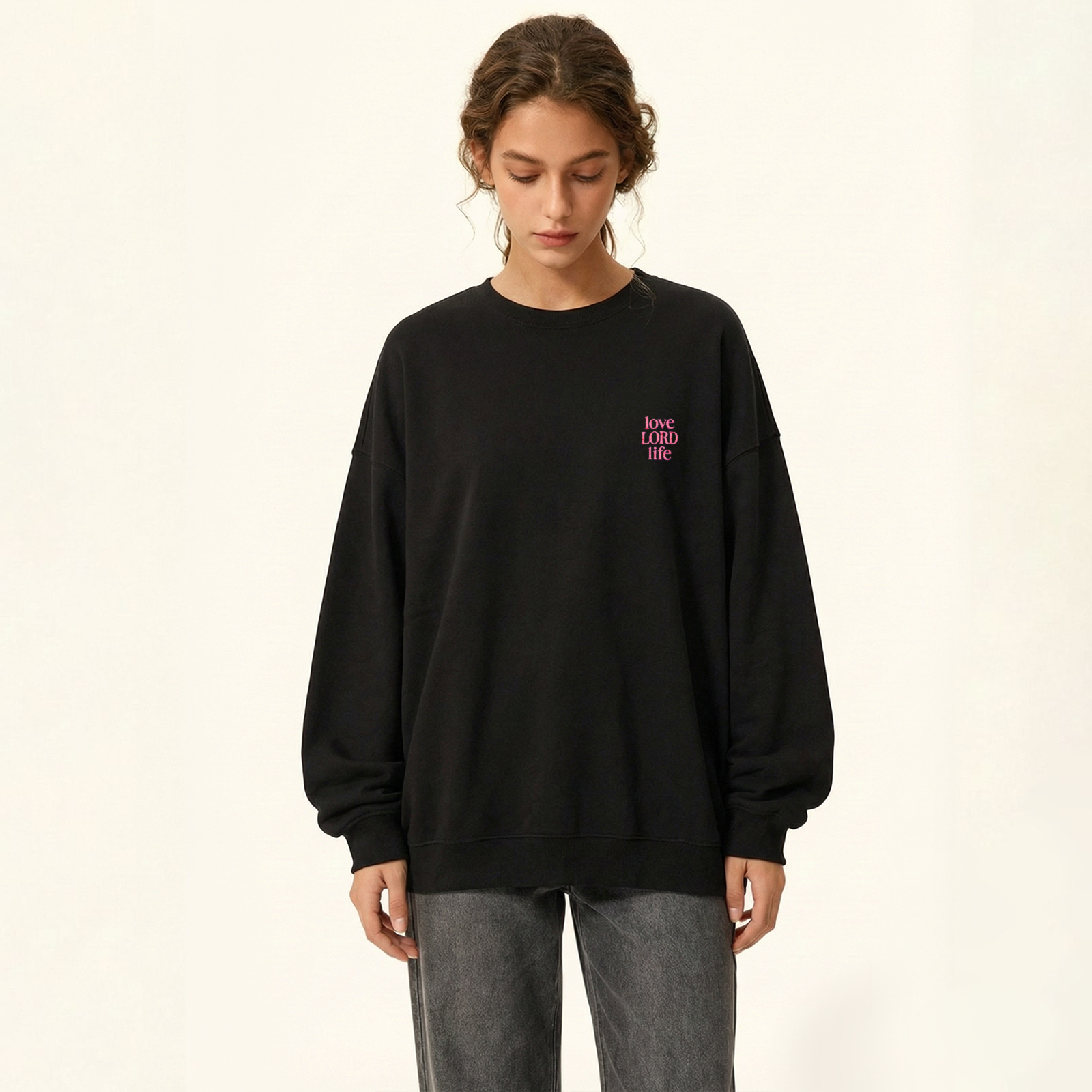Love Lord Life Embroidery Unisex Crewneck Sweatshirt
