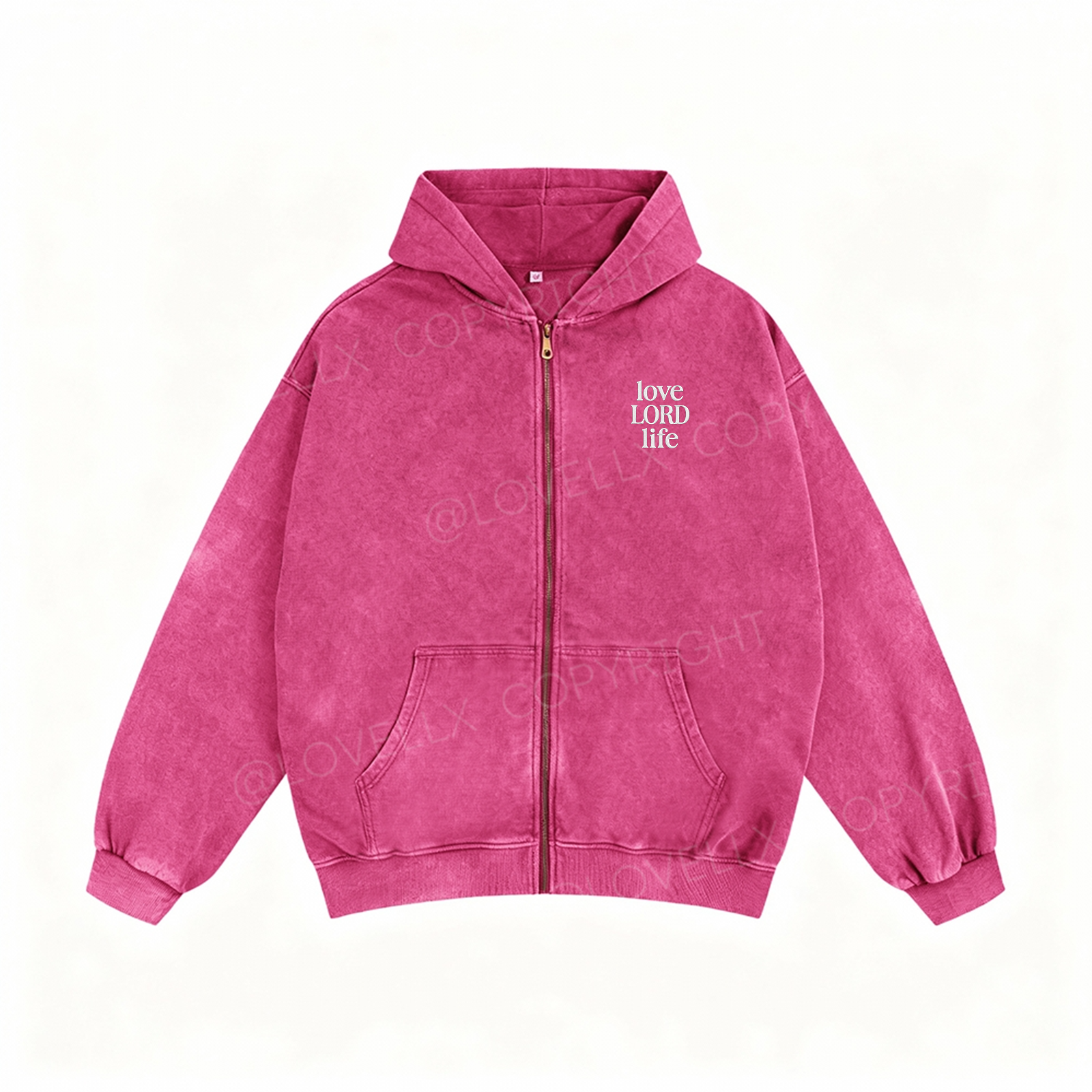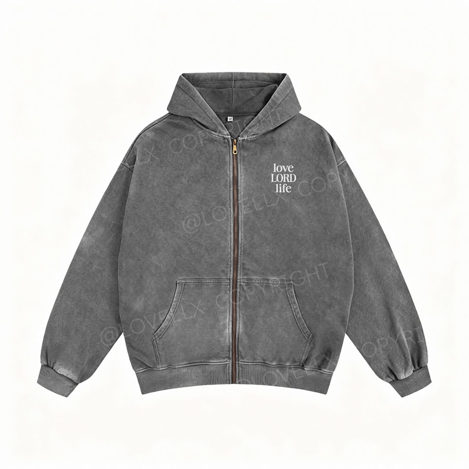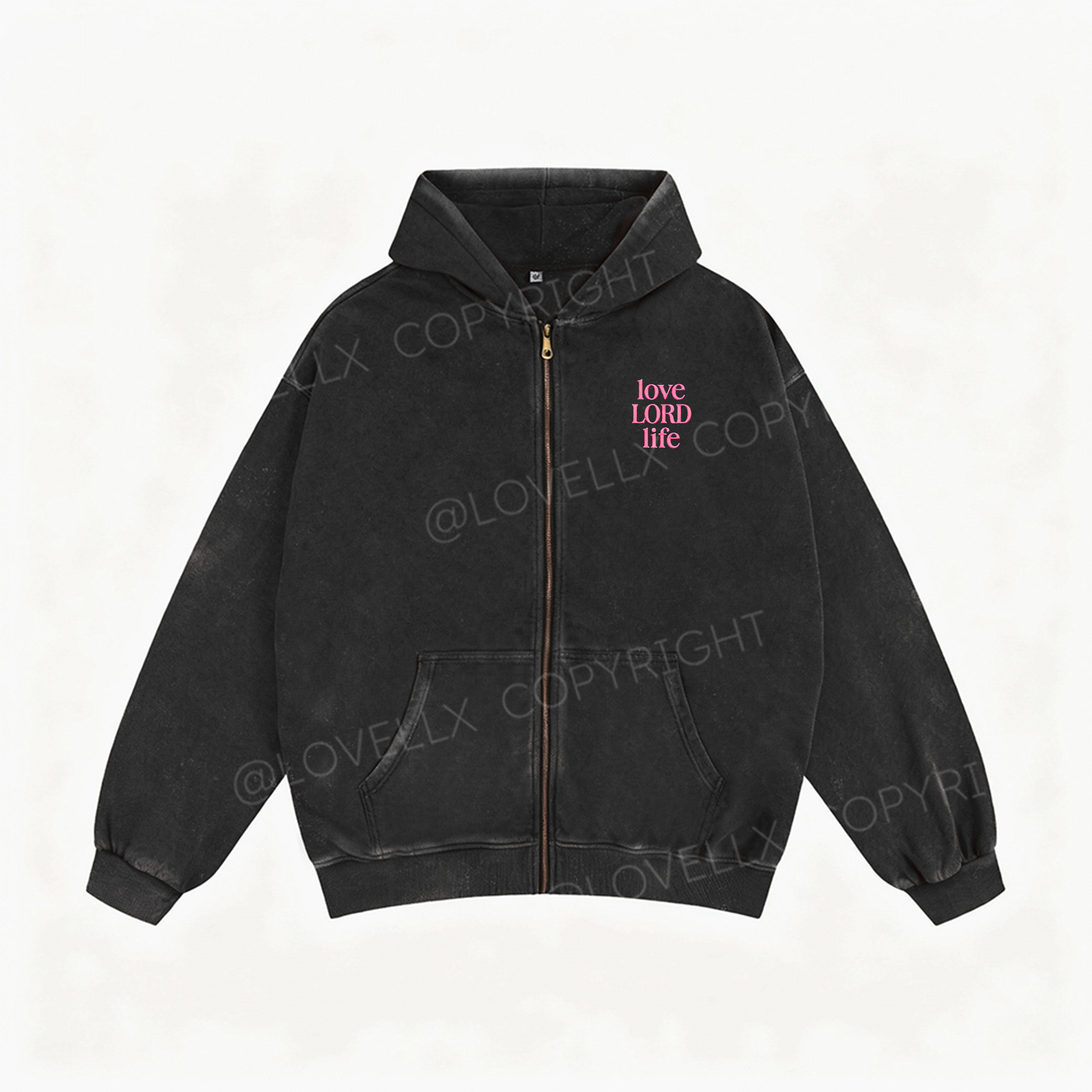 Love Lord Life Embroidery Unisex Washed Zip-Up Hoodie