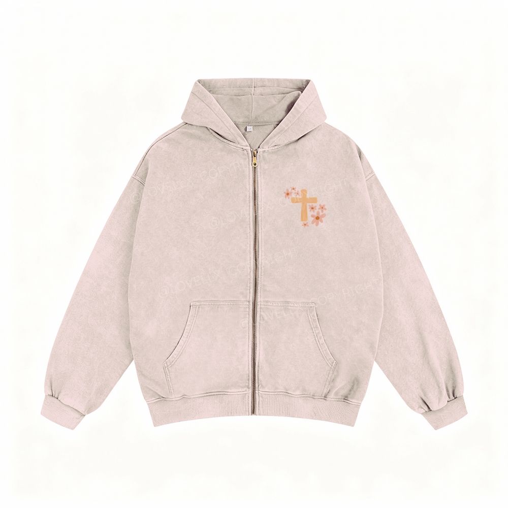 Loved By Jesus Unisex Washed Zip-Up Hoodie
