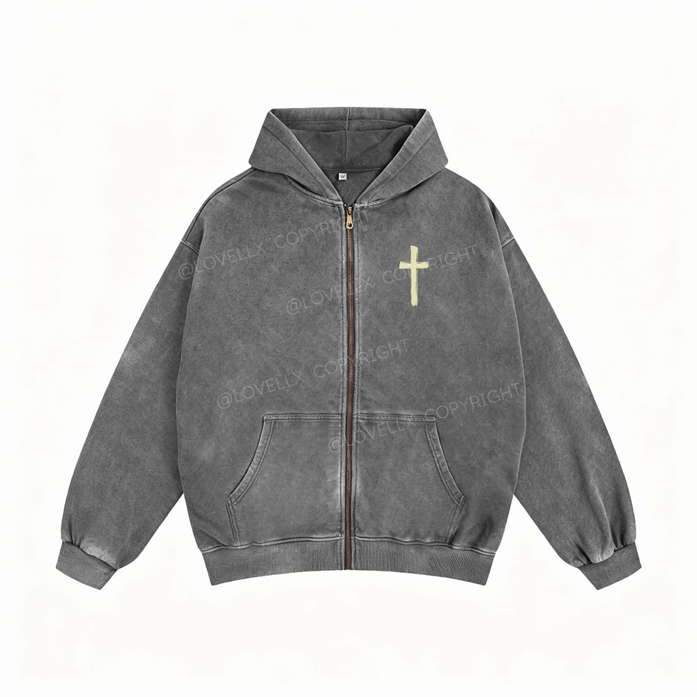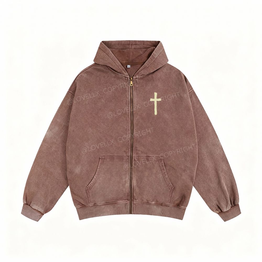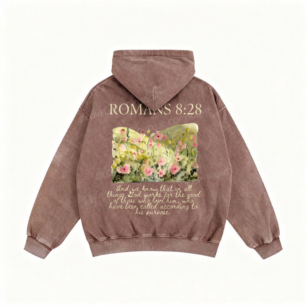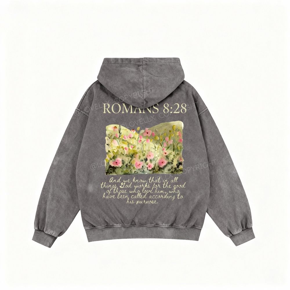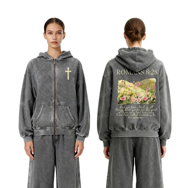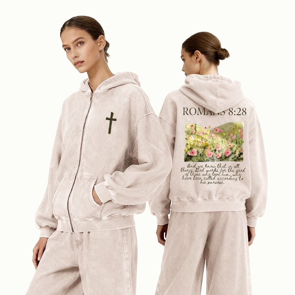 Romans 8:28 Unisex Washed Zip-Up Hoodie