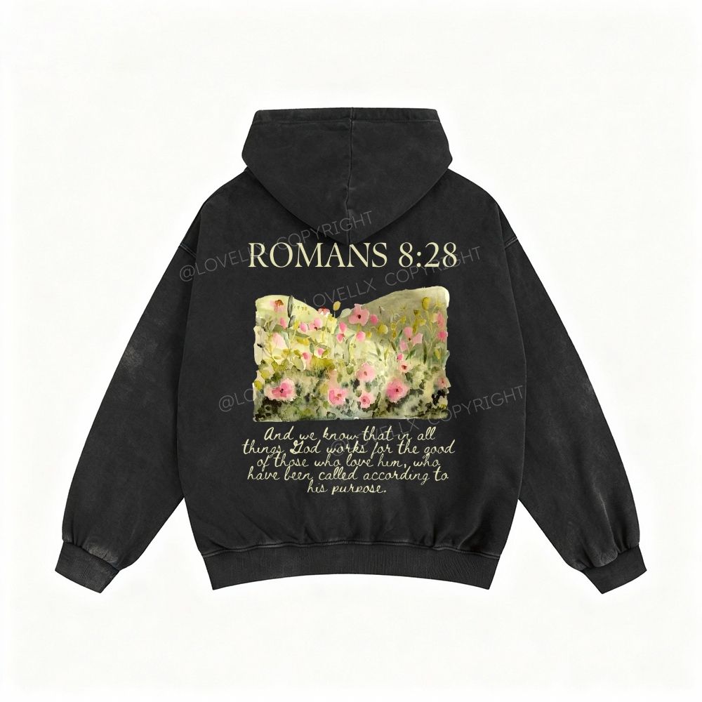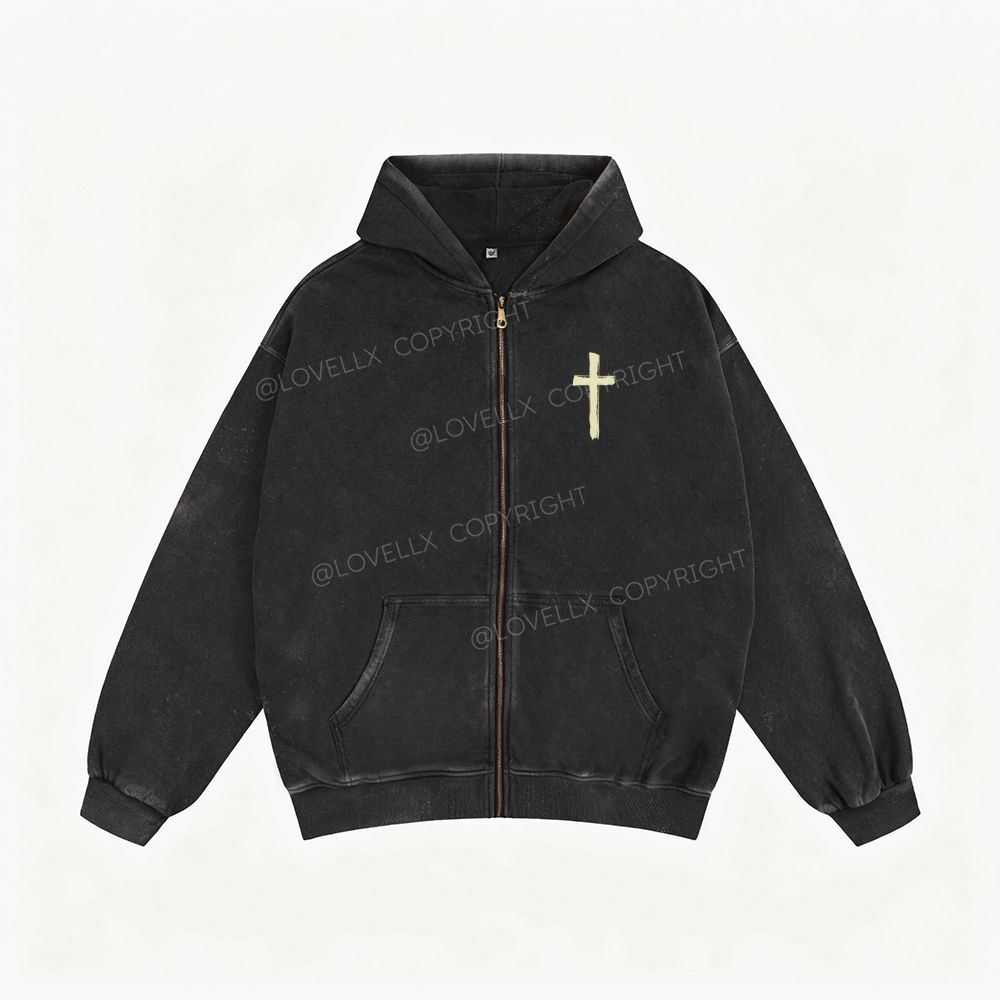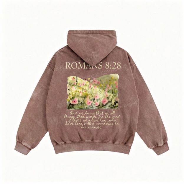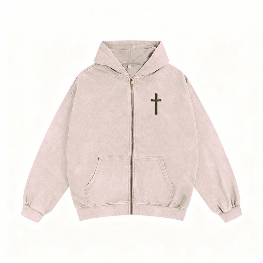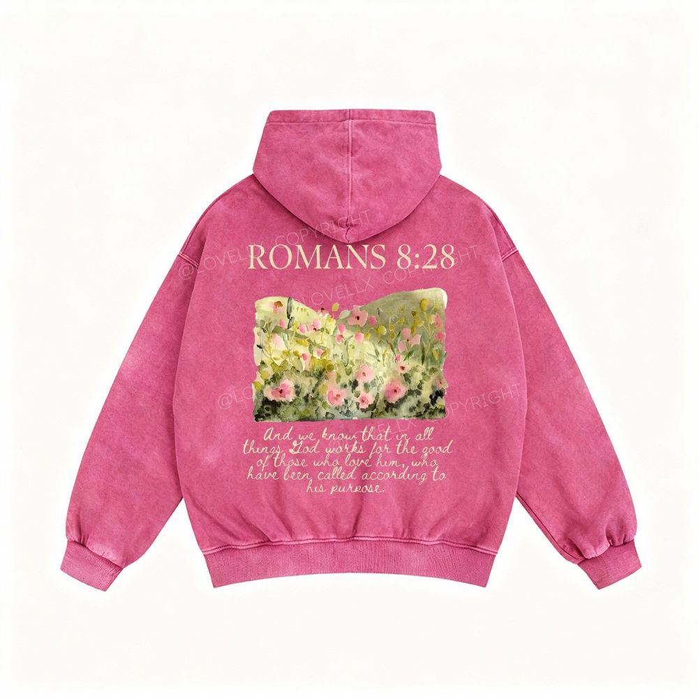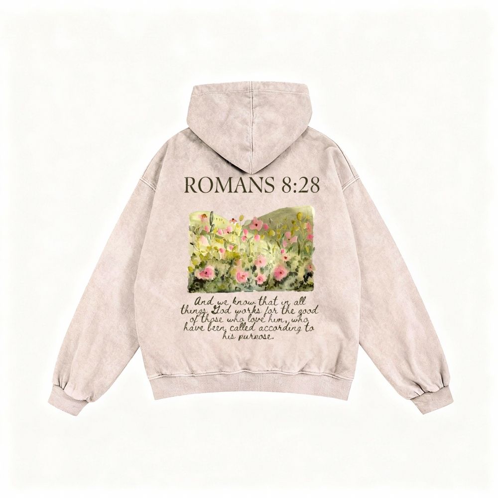 Romans 8:28 Unisex Washed Zip-Up Hoodie