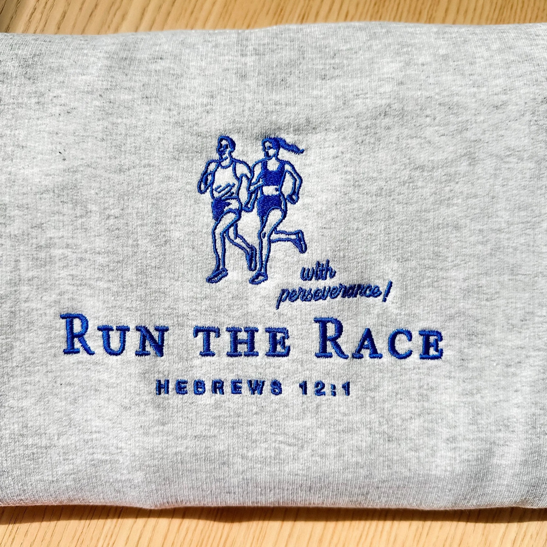 Run The Race Embroidery Unisex Crewneck Sweatshirt