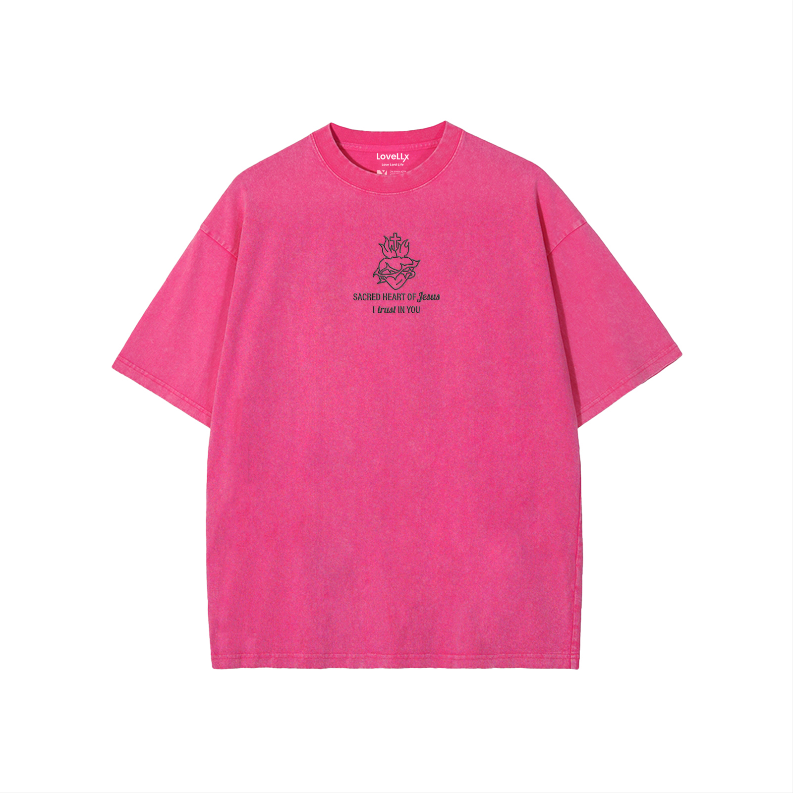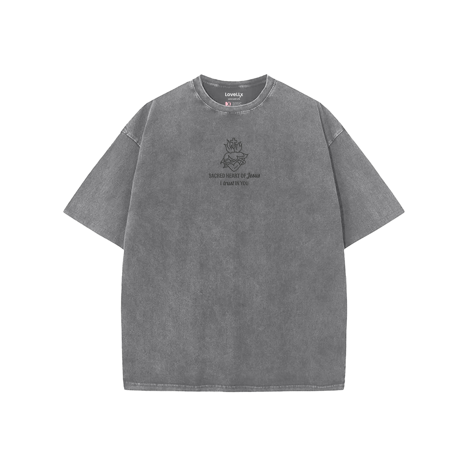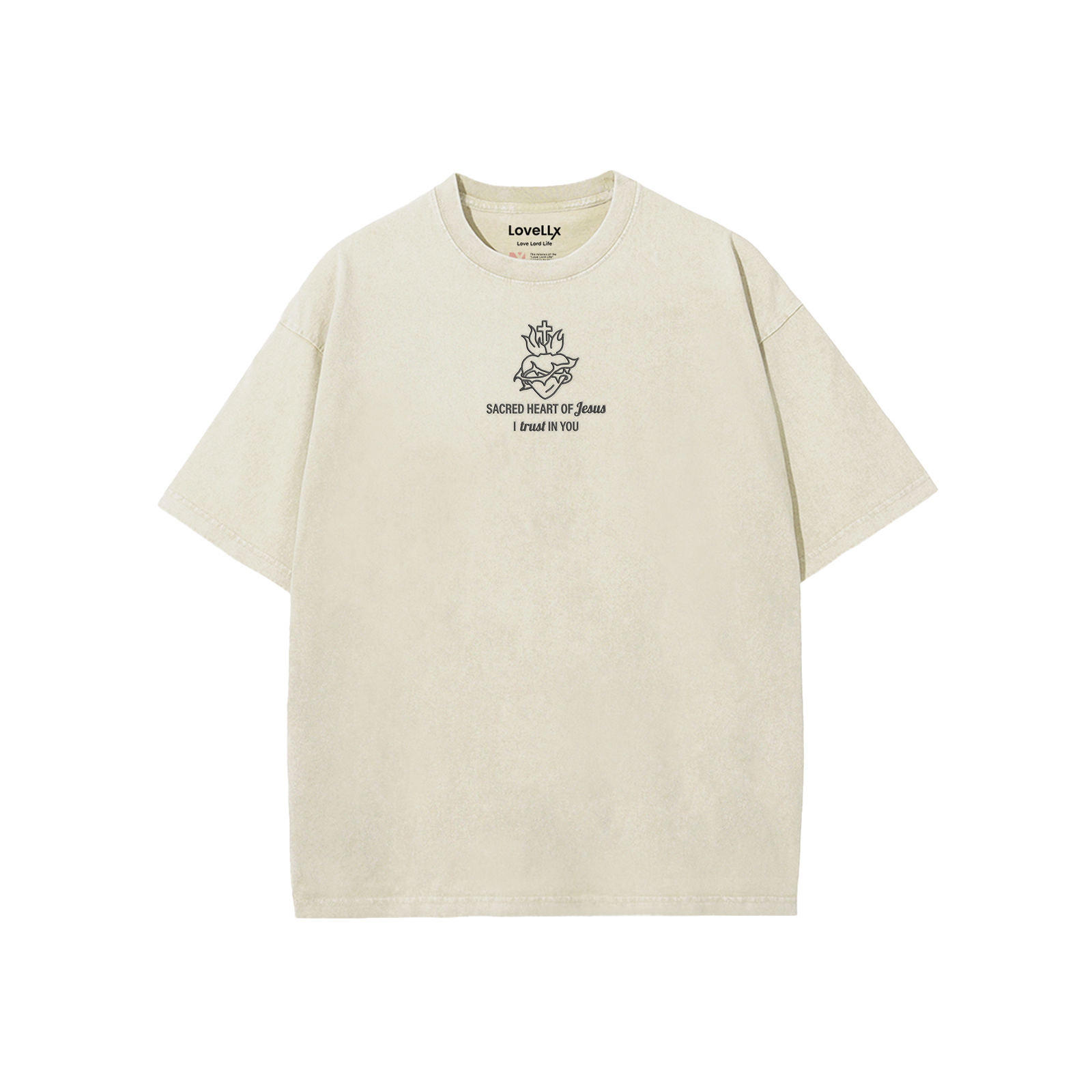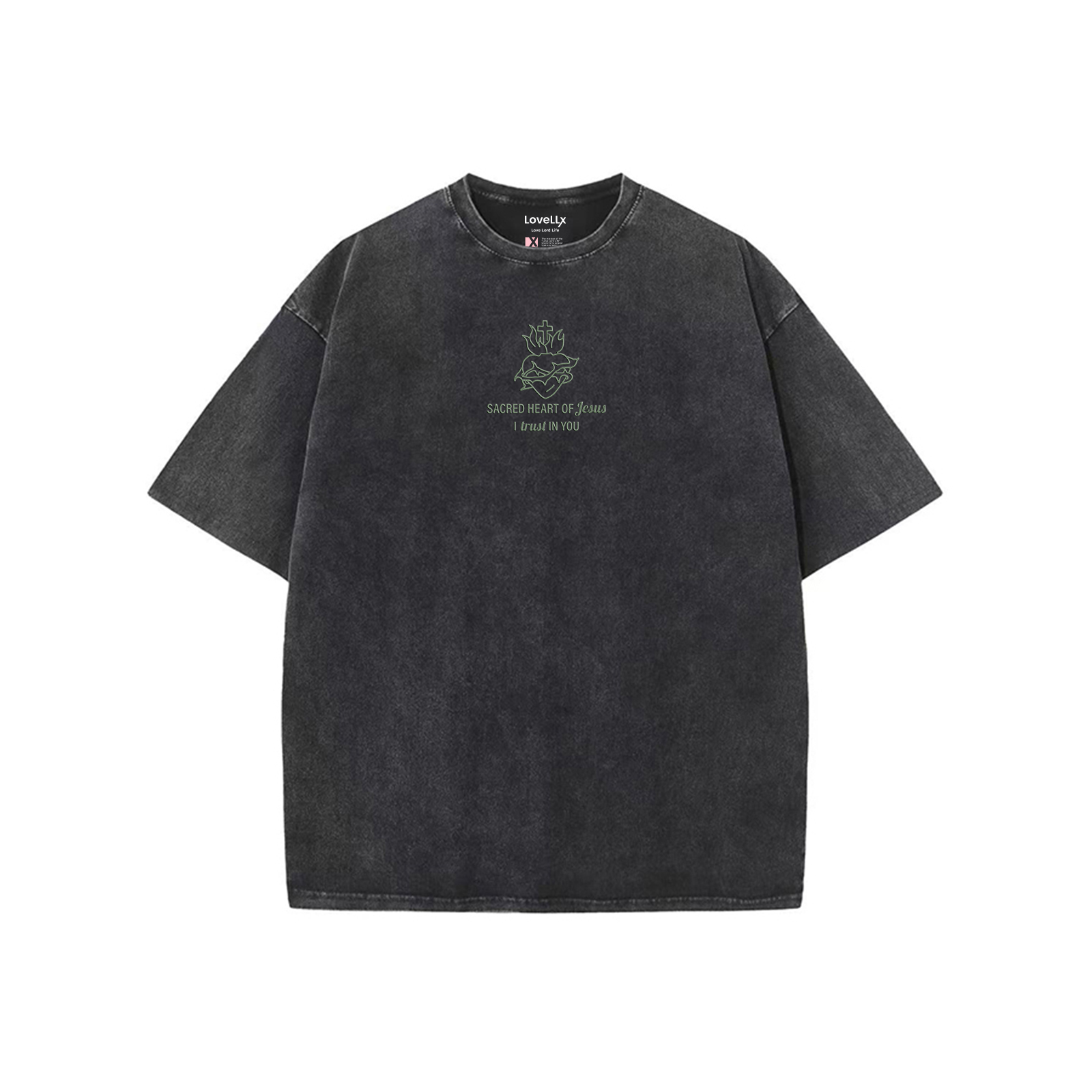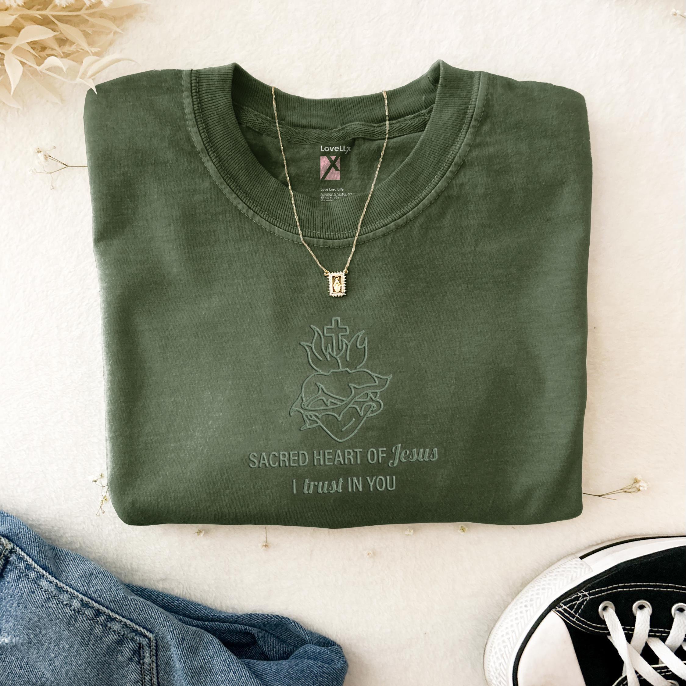 Sacred Heart Of Jesus Embroidery Unisex Washed T-Shirt
