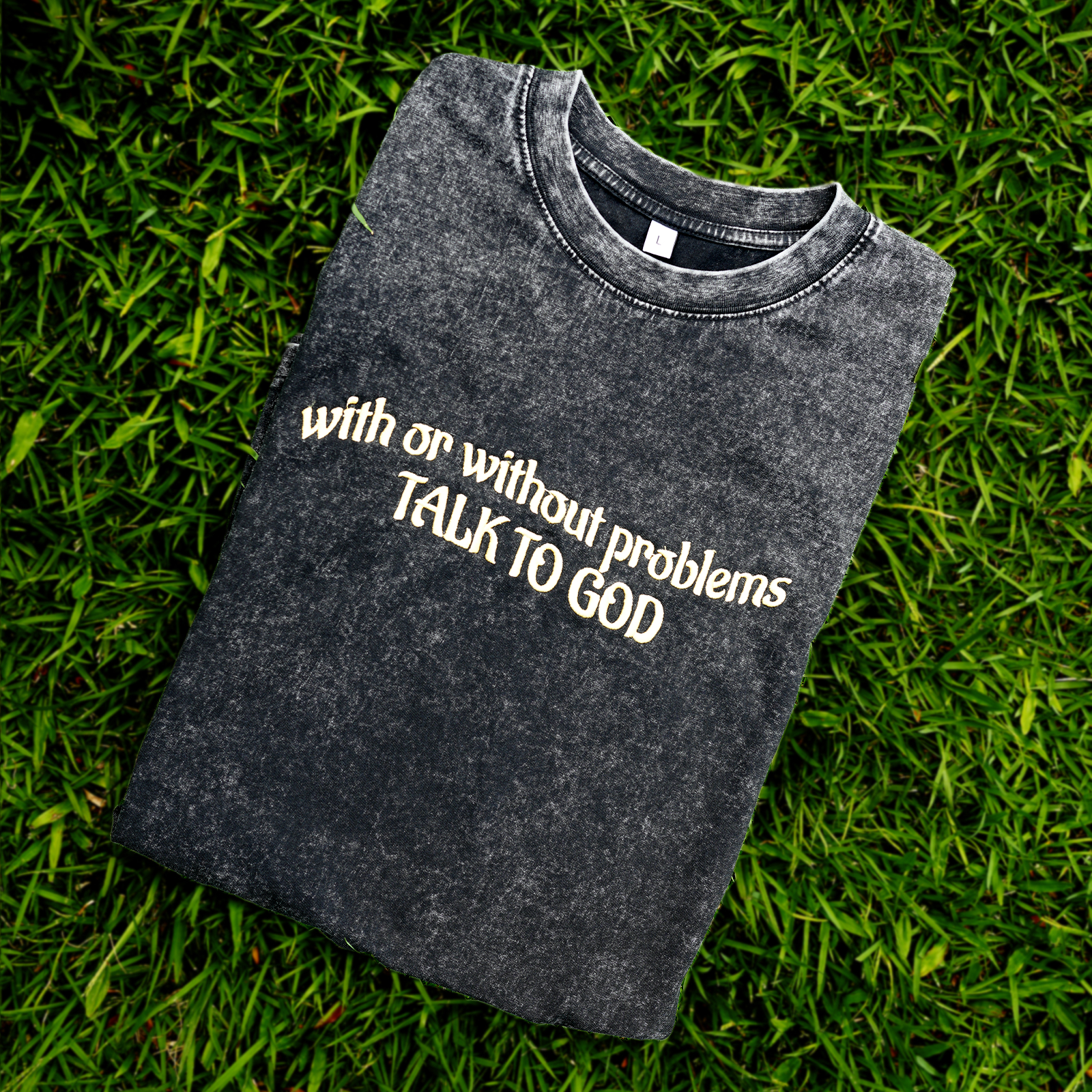 Talk To God Embroidery Unisex Washed T-Shirt
