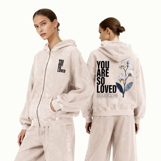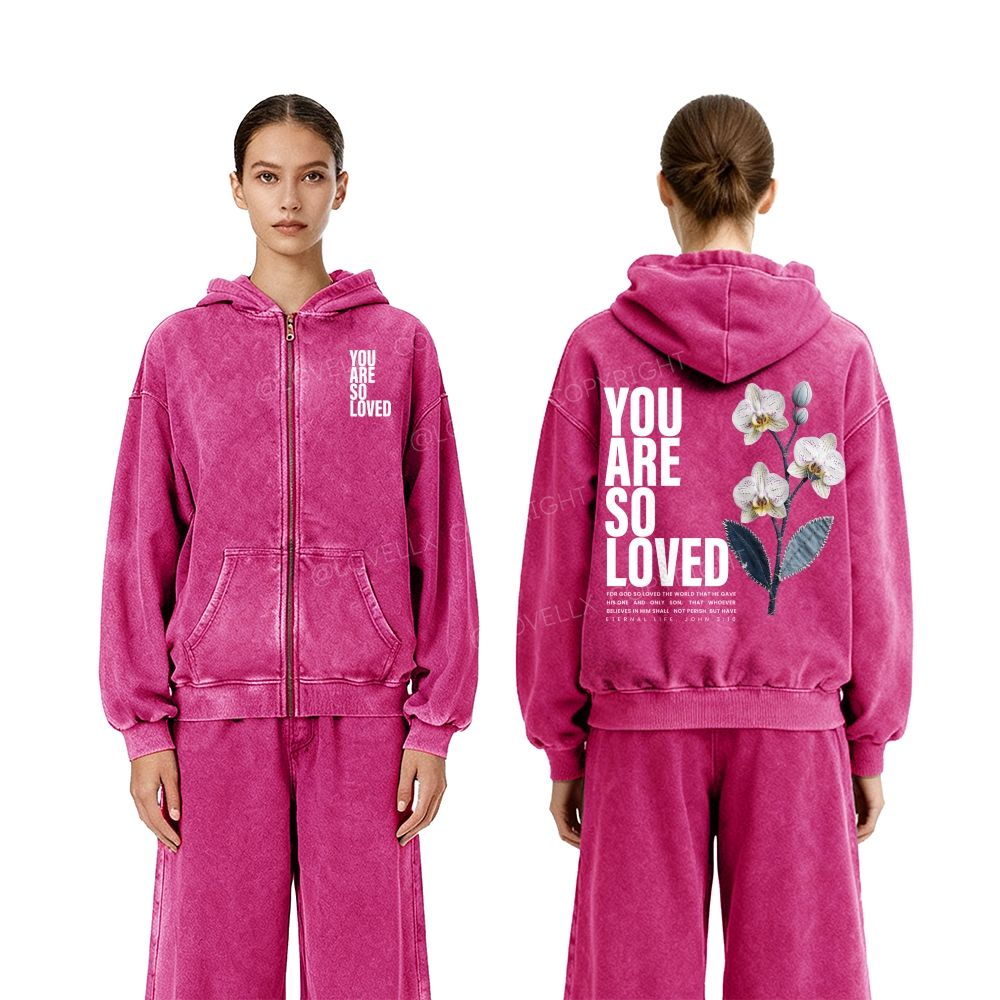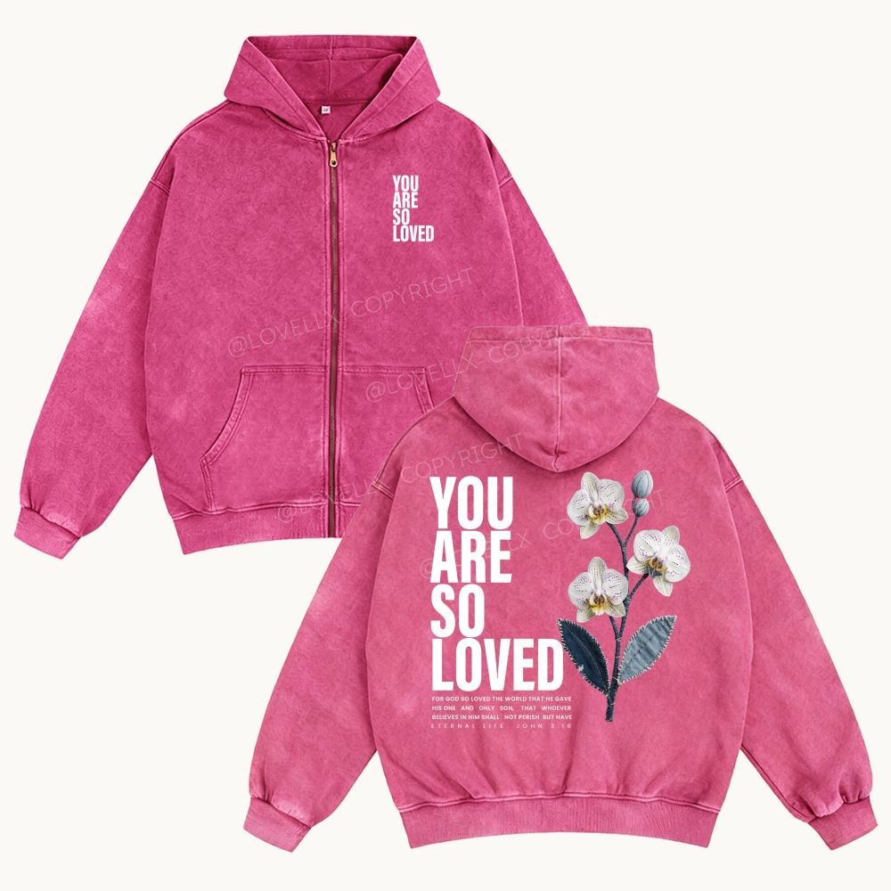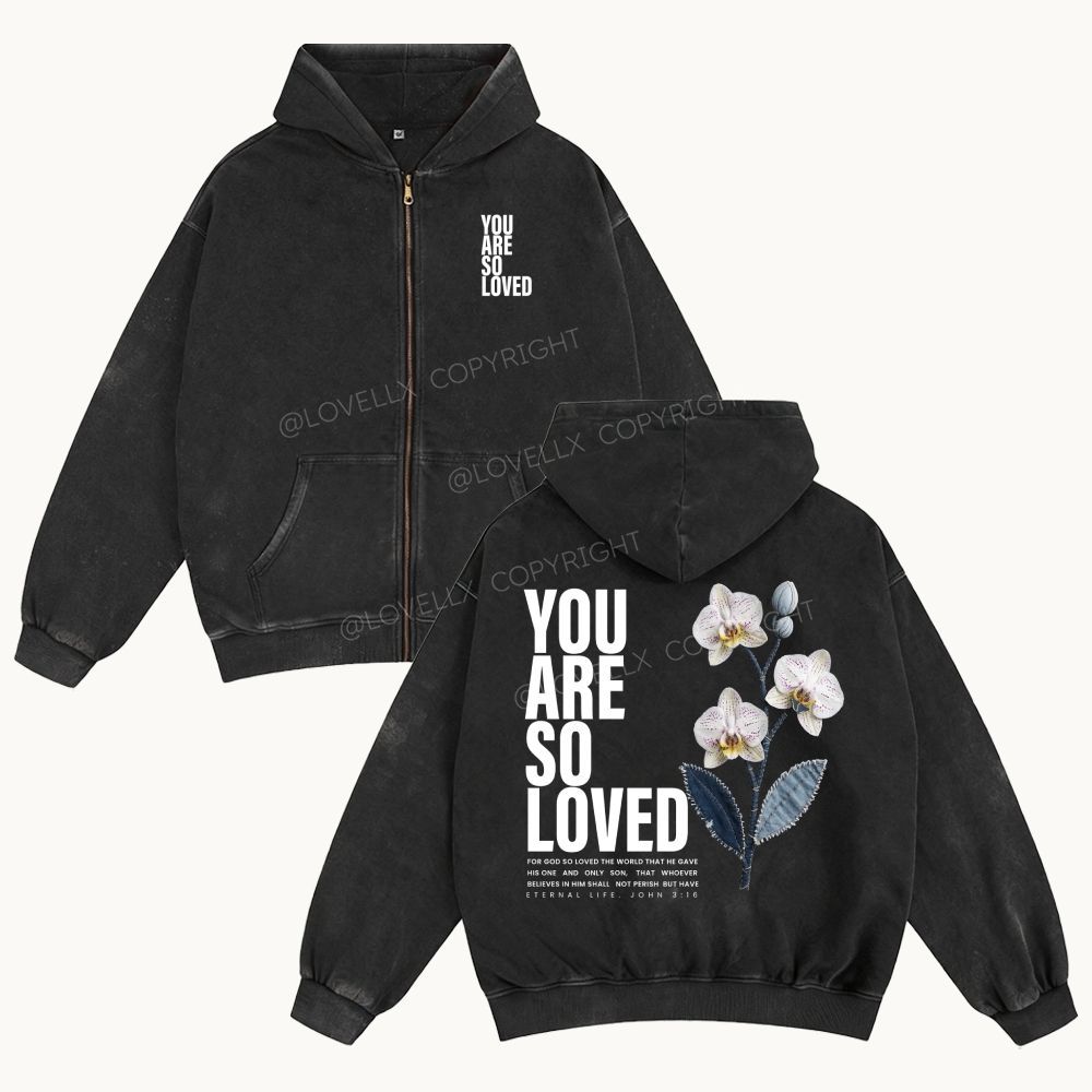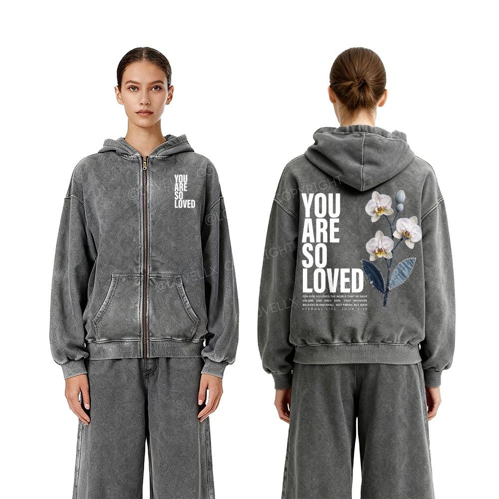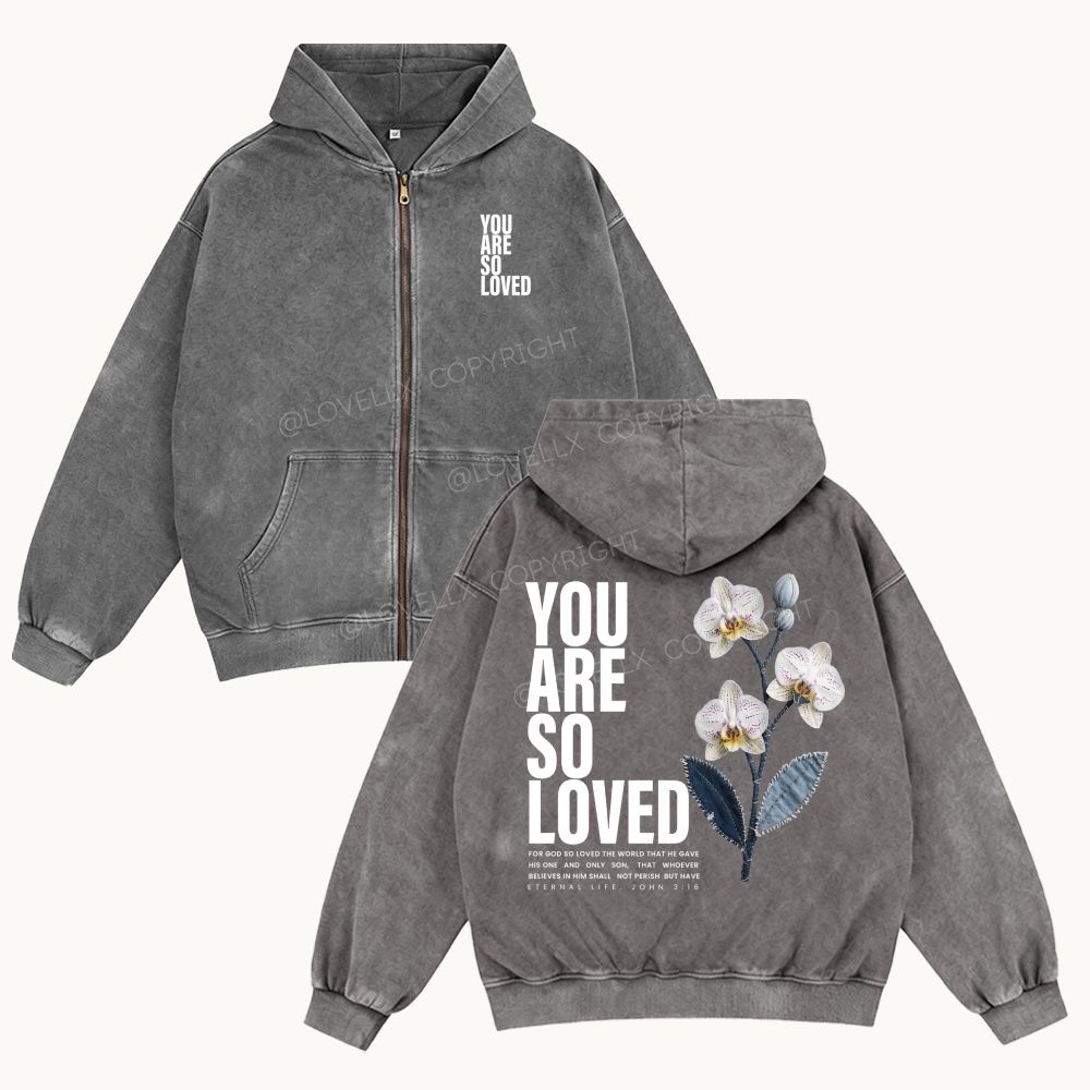 You Are So Loved Unisex Washed Zip-Up Hoodie